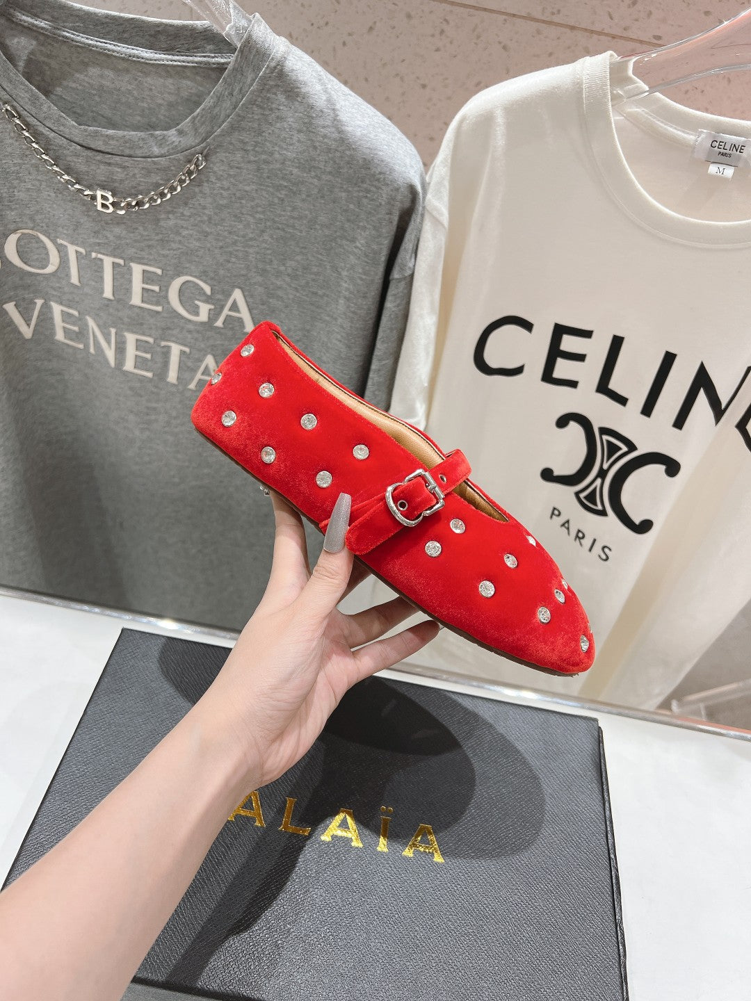 • Material: Velvet With Rhinestones, Lambskin