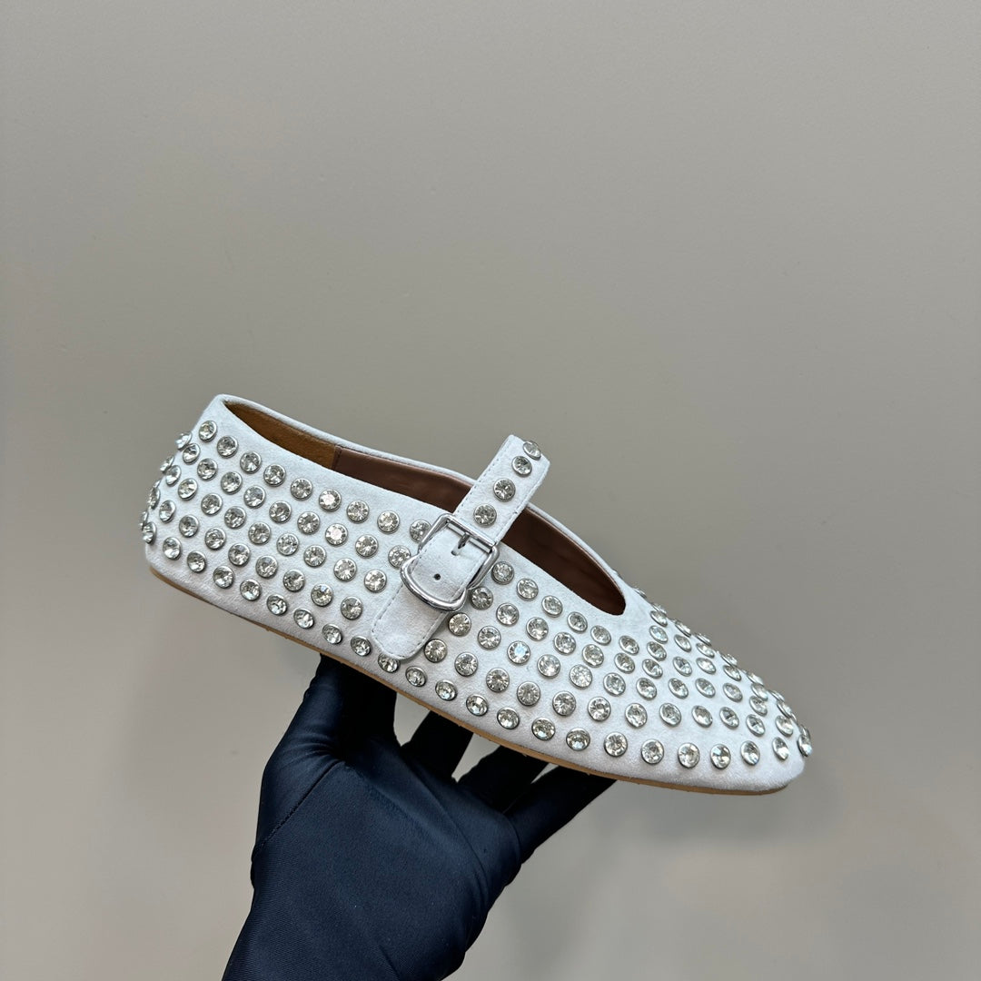 ALAIA SPHERE BALLET FLATS IN WHITE LAMBSKIN
