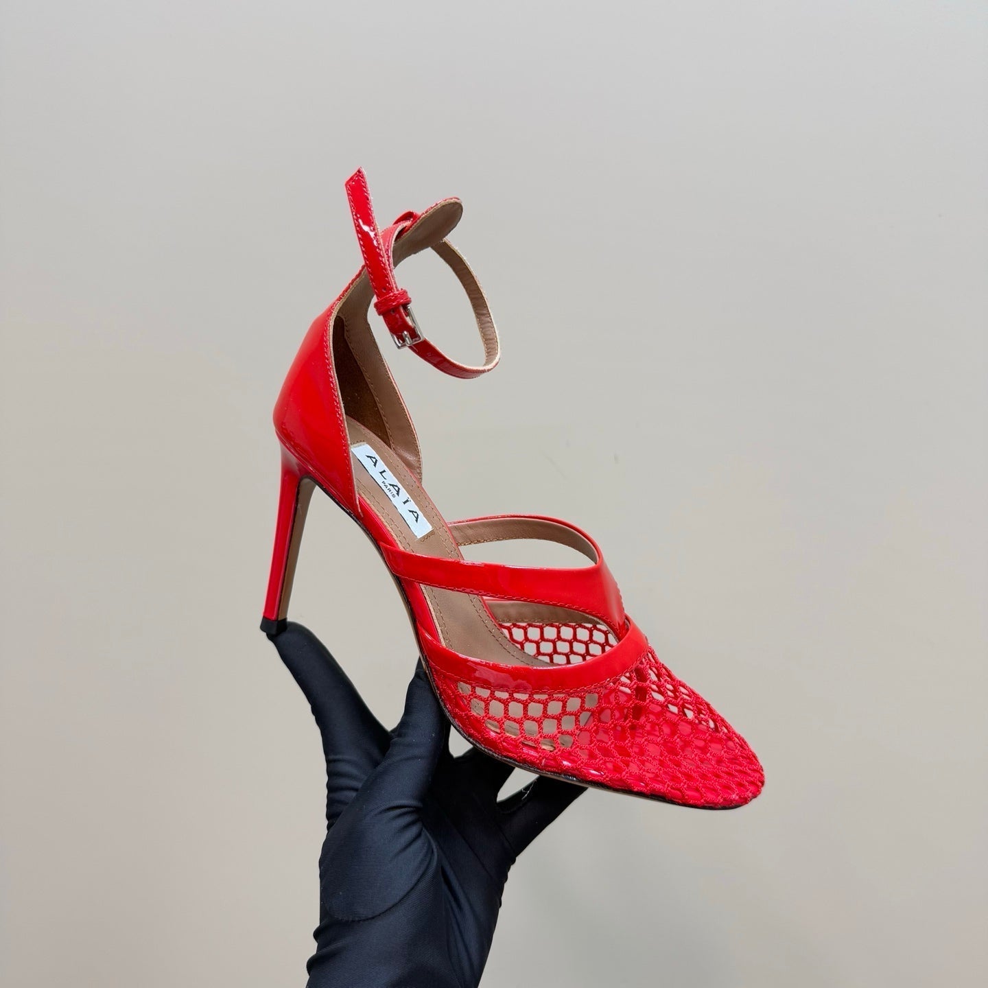 alaia mule 85 fishnet red heart lambskin