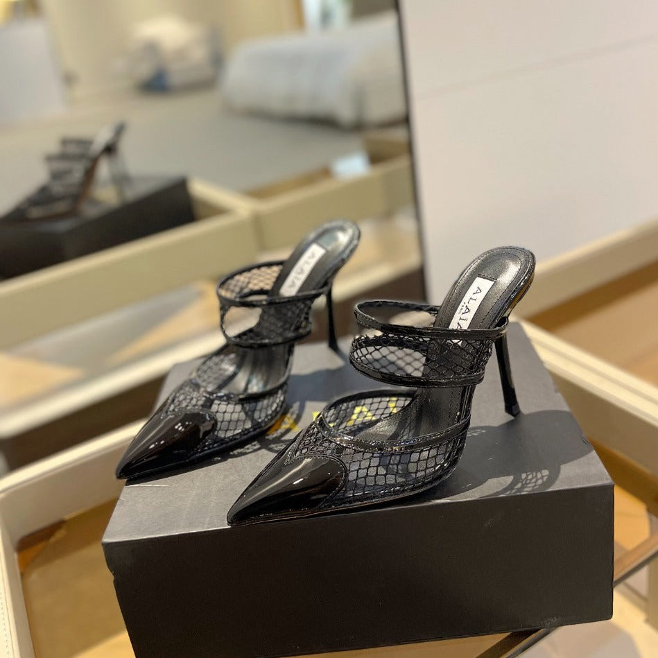 alaia mule 110 fishnet black heart lambskin