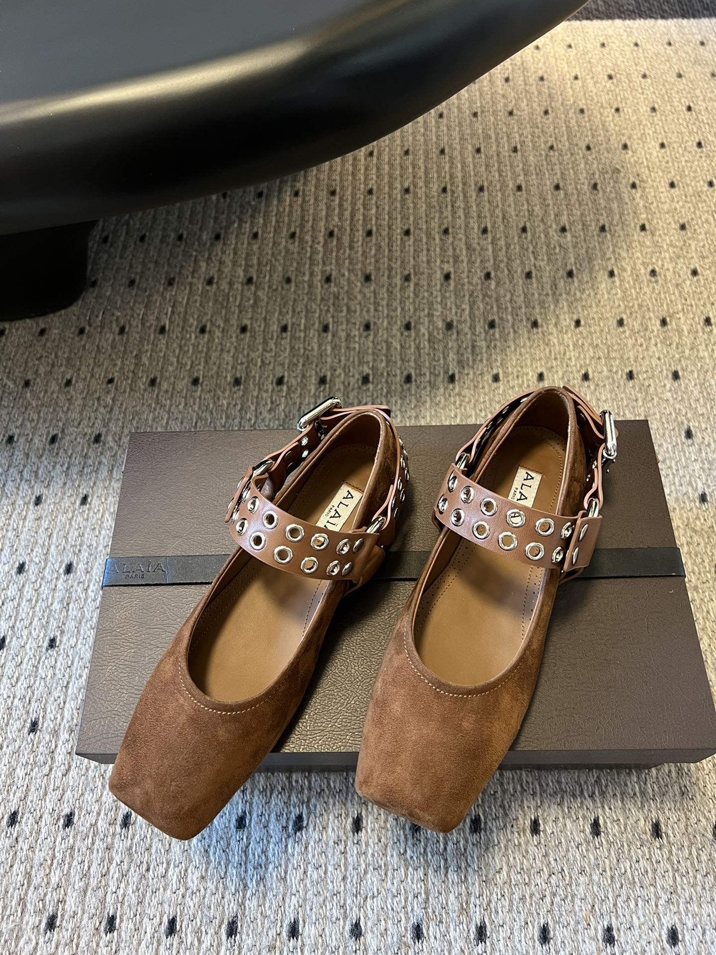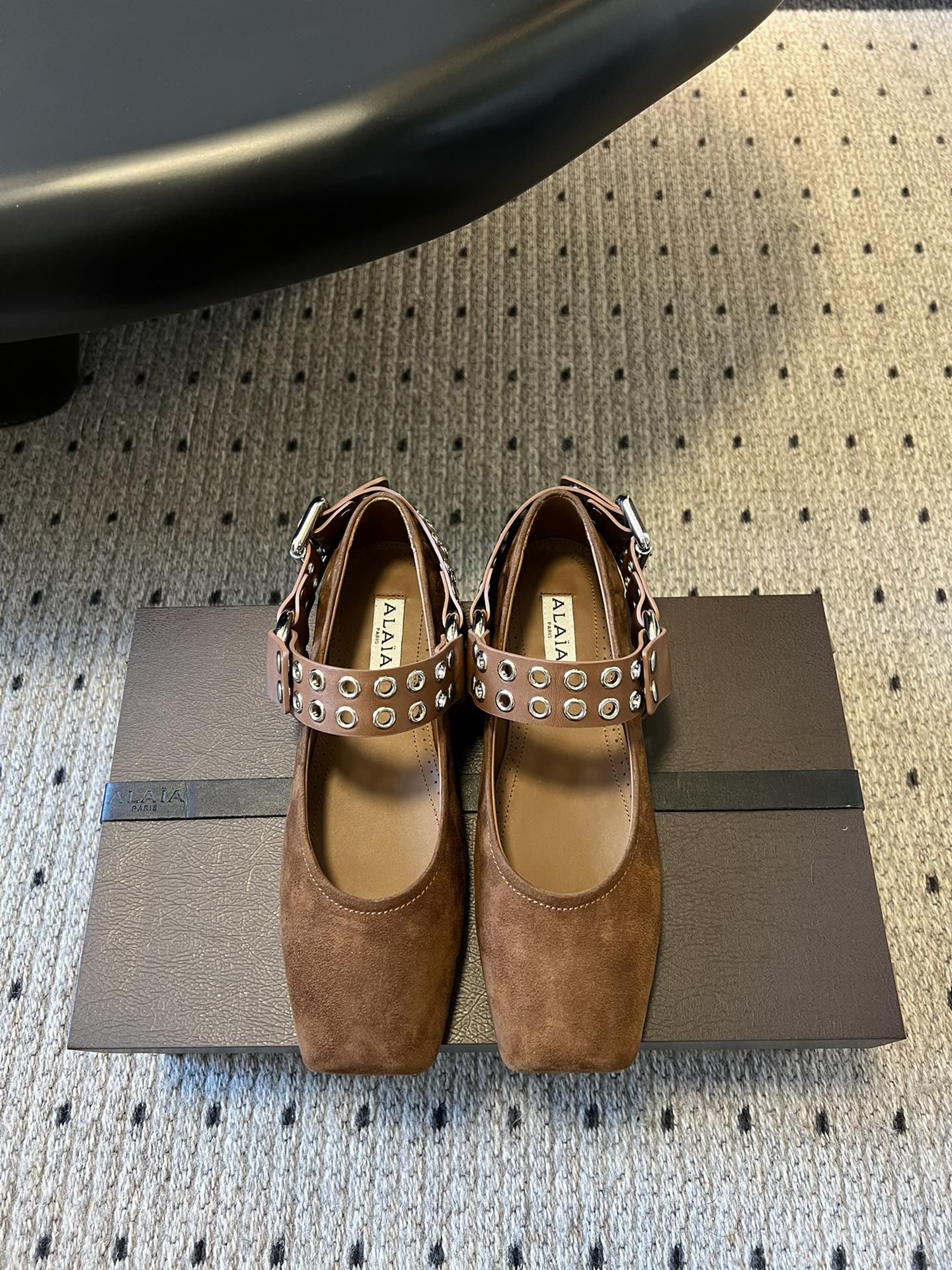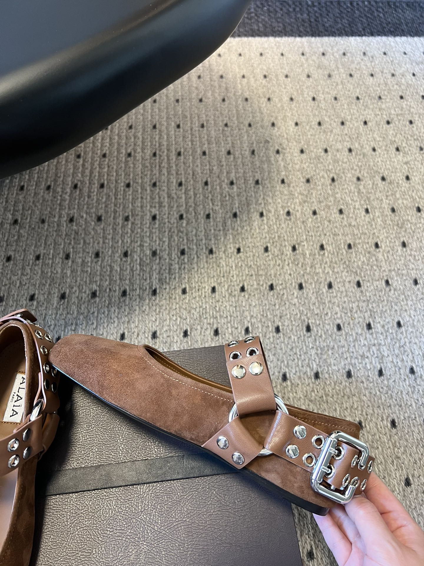 Alaia 25 Biker Ballet Flats Brown Chocolate Suede 303730