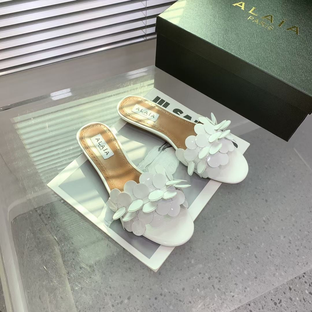 Alaia 25 Flower Slippers White Sheepskin 293161