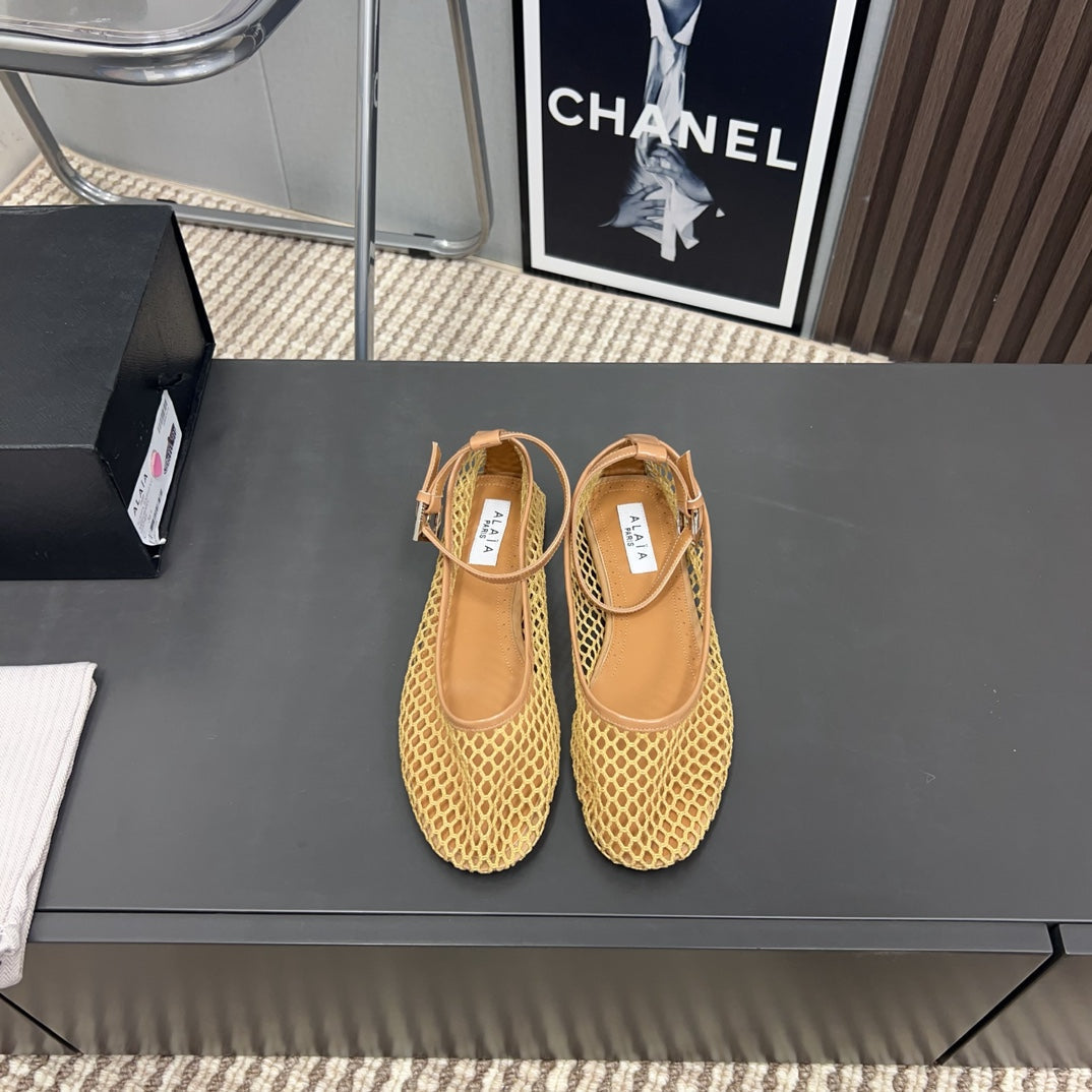 Alaila Mary Jane In Dark Yellow Mesh Fabric 996077