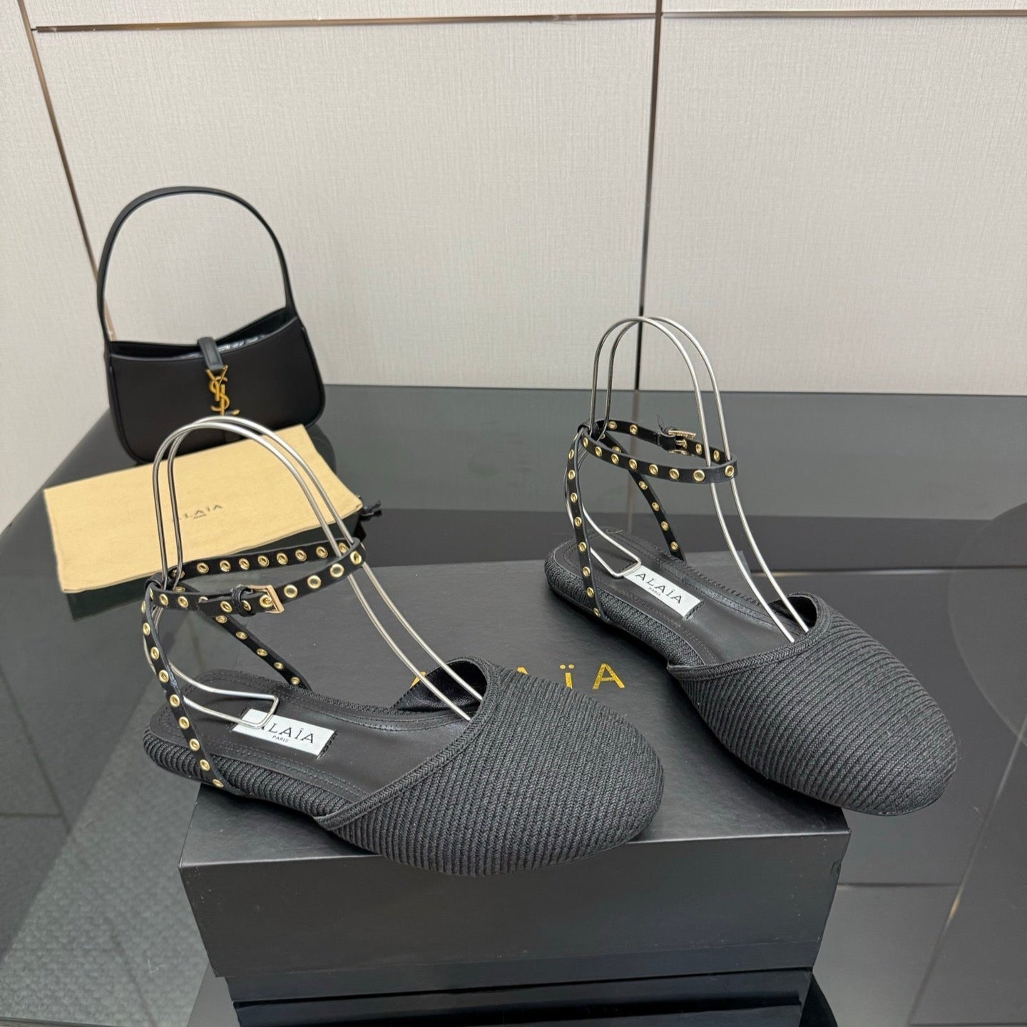 Alaia 2025 Criss Cross With Stud Ballet Flats Black Suede 293205