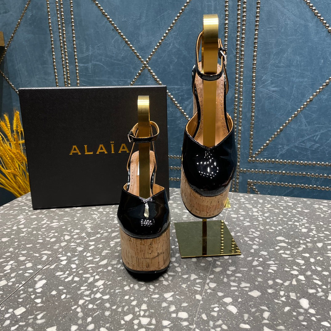 ALAIA WEDGE PUMP 15 CM IN BLACK LAMBSKIN AND BEIGE RUBBER