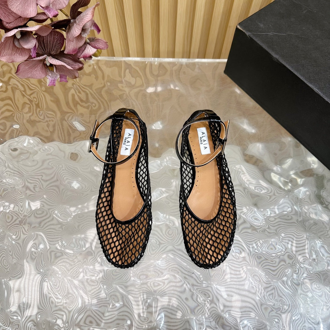 Alaia Ballet Flats In Black Stretch Woven Sedge 102276