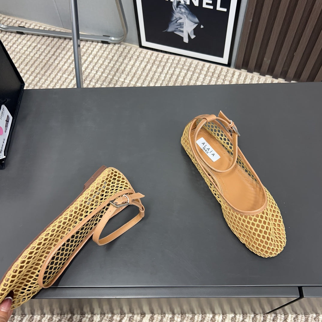 Alaia Ballet Flats In Gold Woven Cowhide 102288