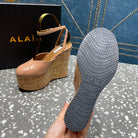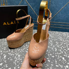 ALAIA WEDGE PUMP 15 CM IN ALMOND BEIGE LAMBSKIN AND BEIGE RUBBER