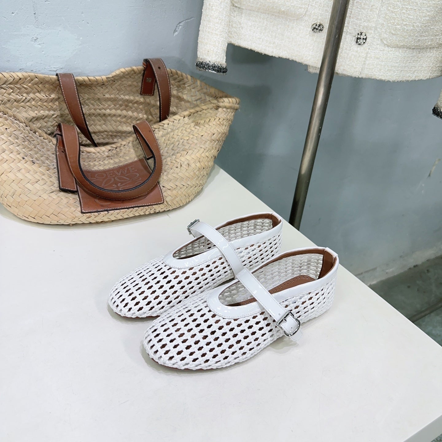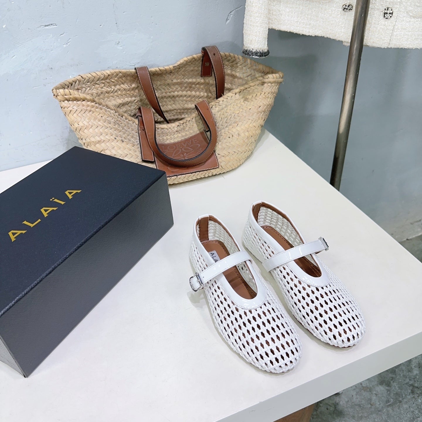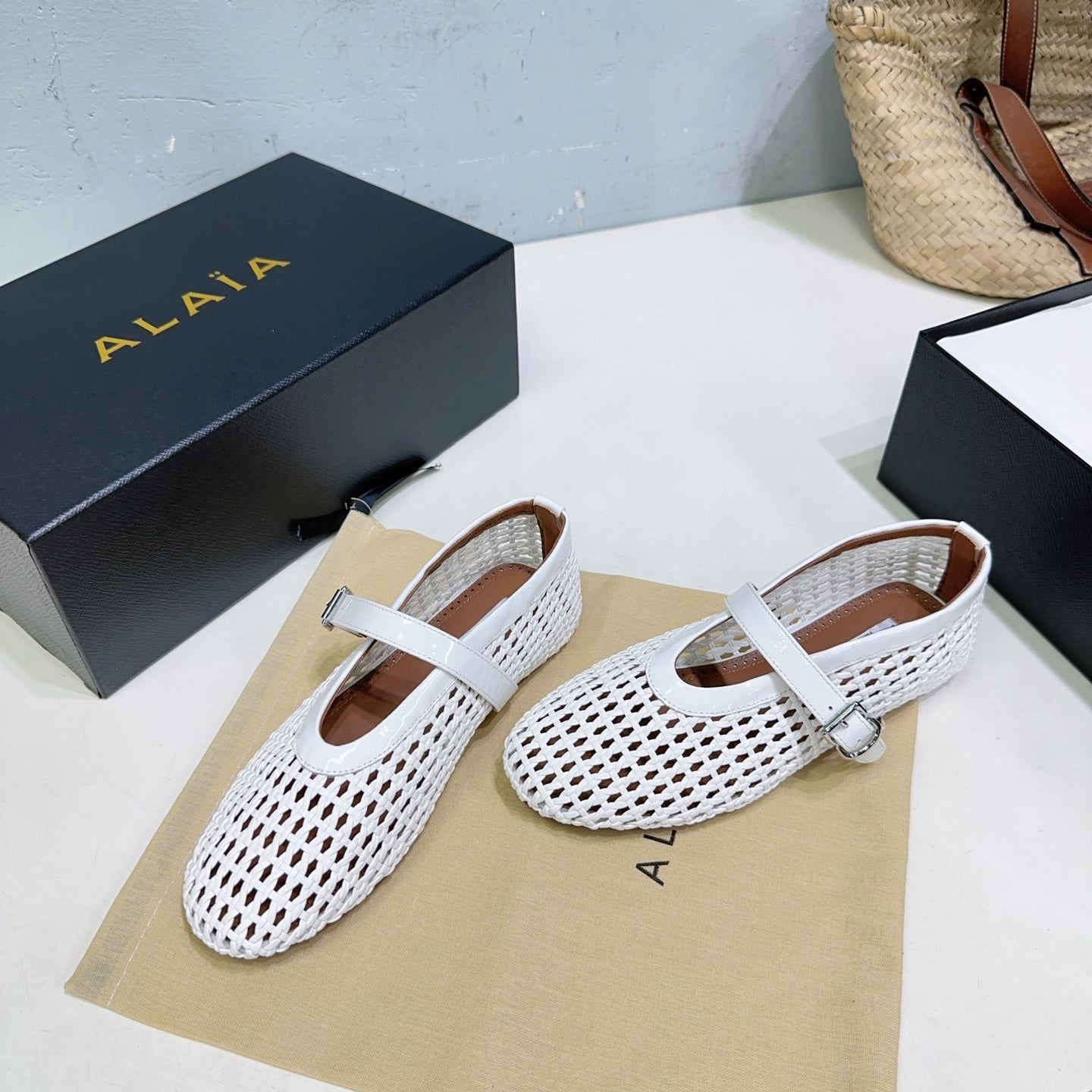 Alaia 25 Laminated Fishnet Ballet Flats White Lambskin 576442