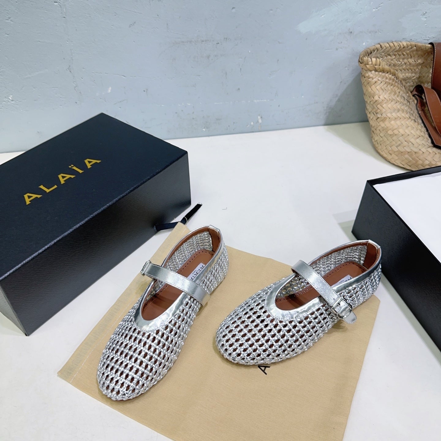 Alaia 25 Laminated Fishnet Ballet Flats Silver Lambskin 677174