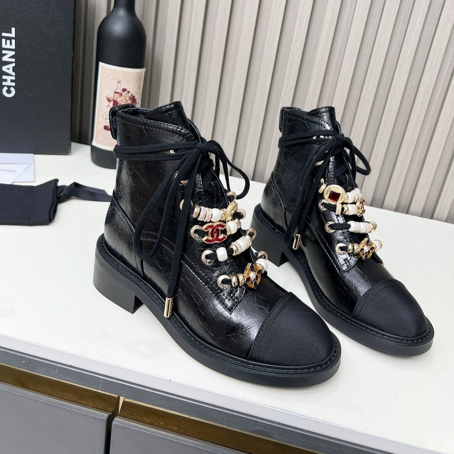 CC Combat Boots 50mm In Glossy Black Cowhide And Lambskin 944661