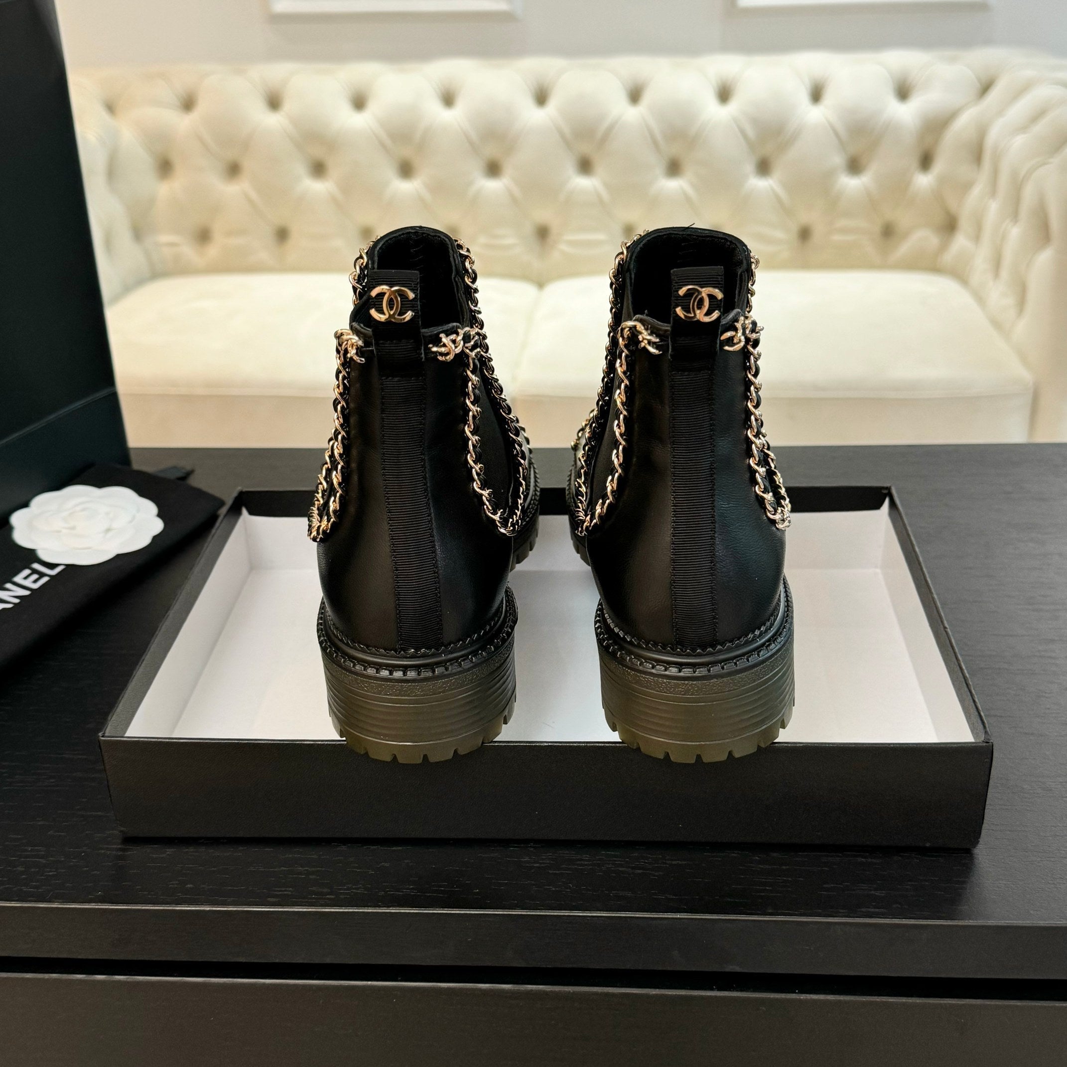 CC Flat Ankle Boots Yellow Brown With Chain Suede And Fleece