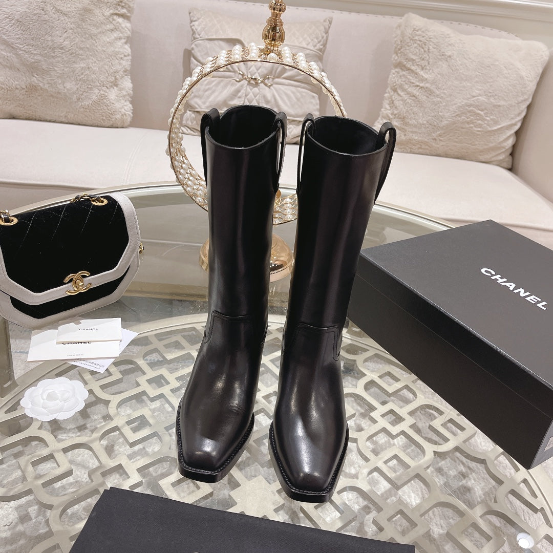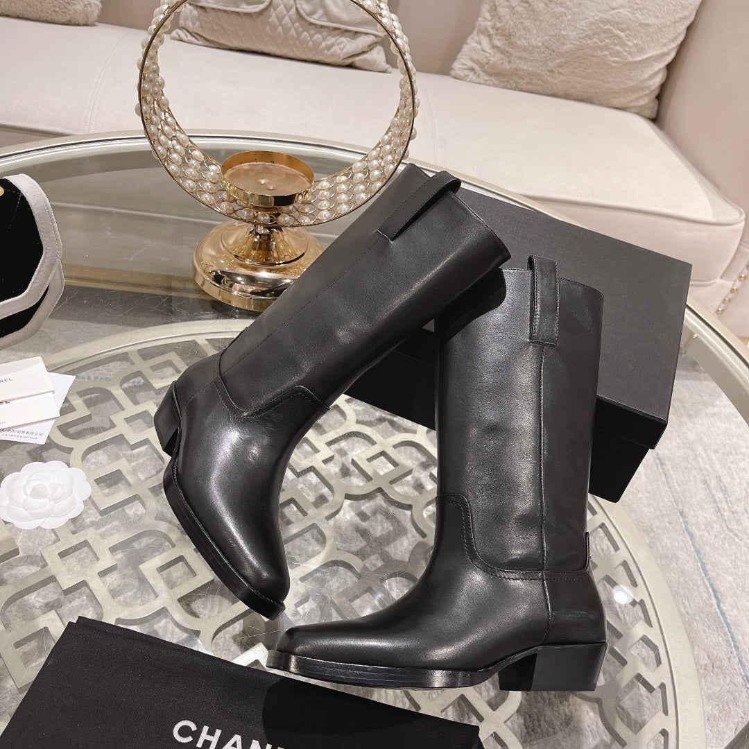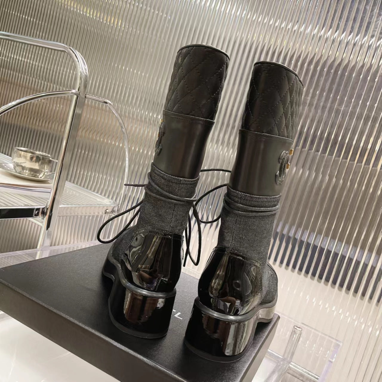 CC High Boots 40mm In Plain Black Mix Glossy Black Quilted Calfskin 949749