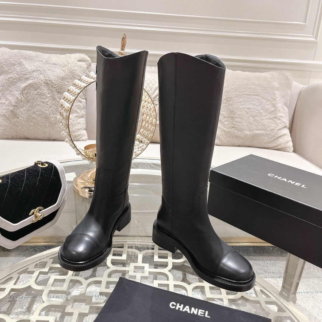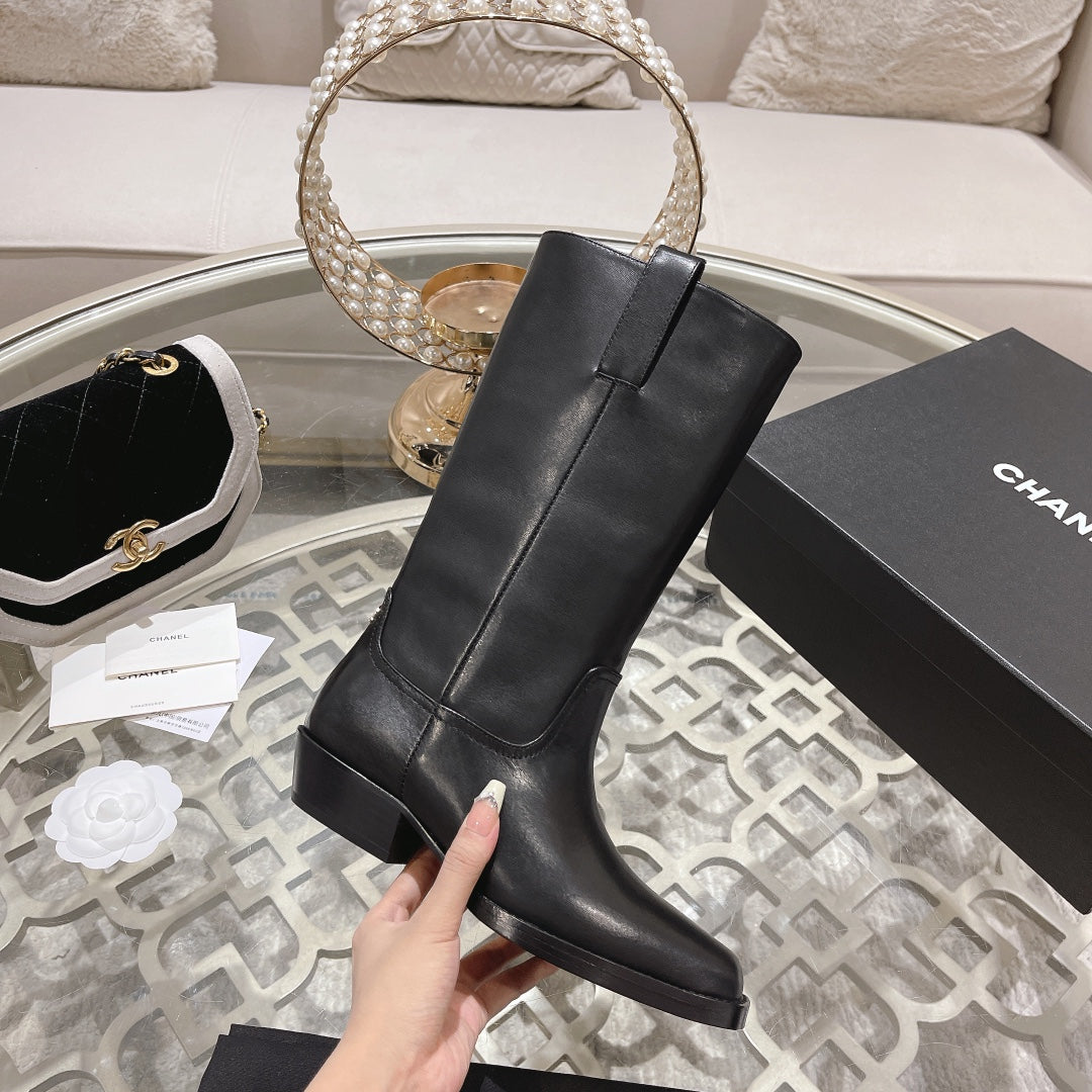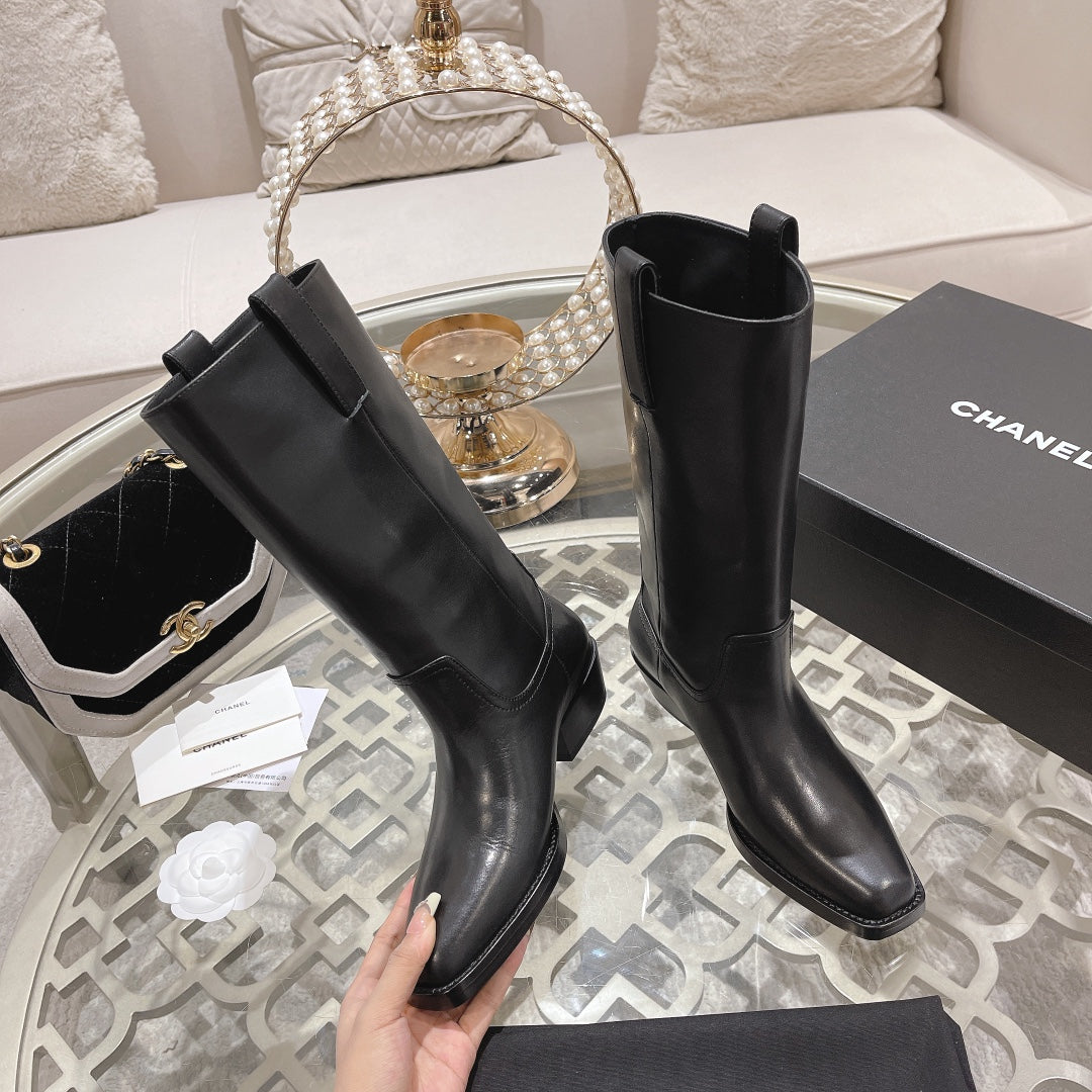CC High Boots 40mm In Plain Black Mix Glossy Black Quilted Calfskin 949749