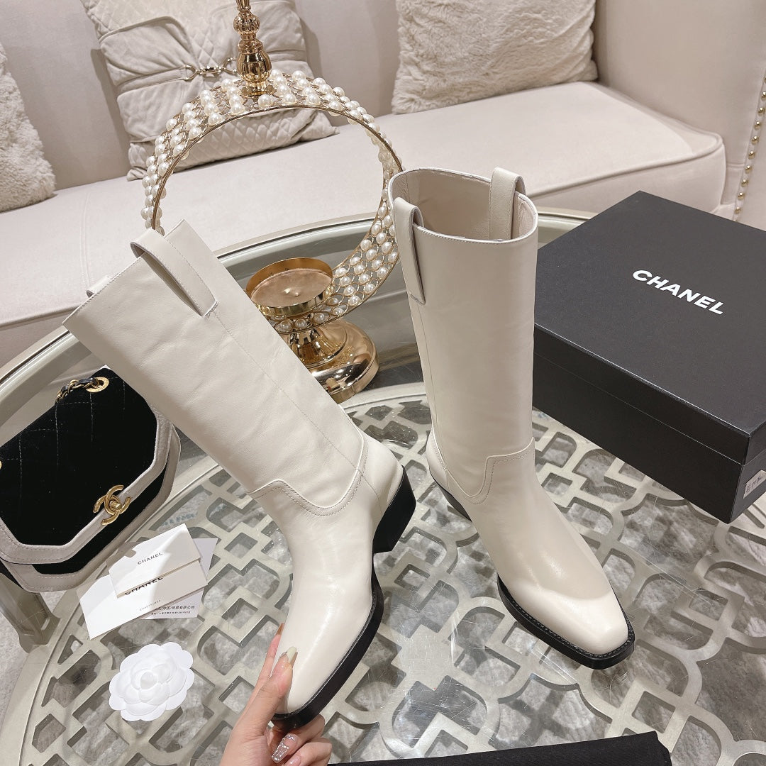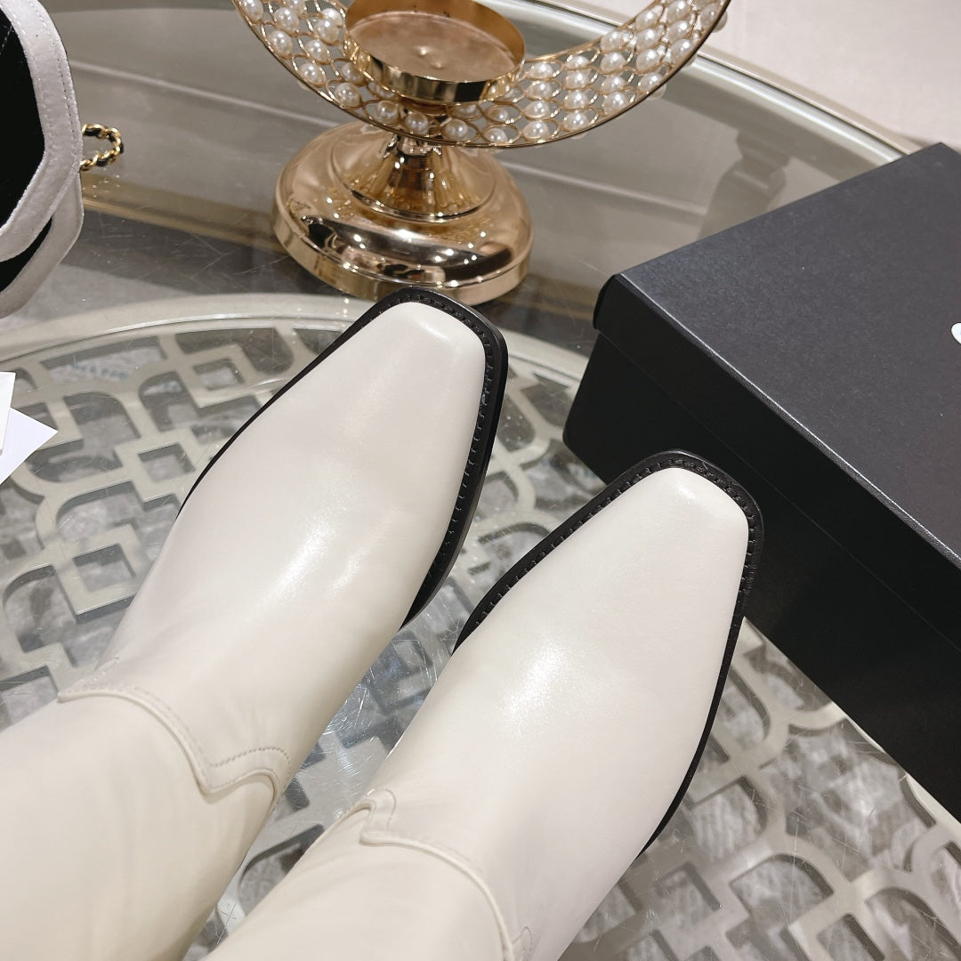 CC High Boots 40mm In Plain Black Mix White Quilted Calfskin 949750