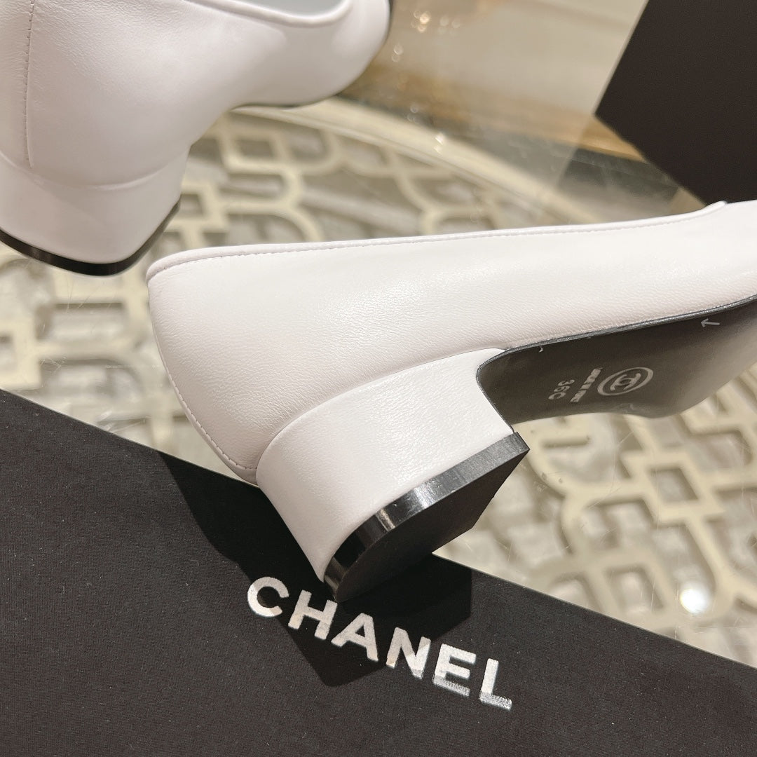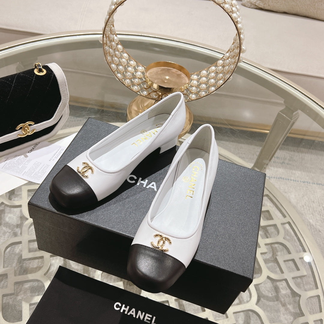 CC High Heels White Black Lambskin