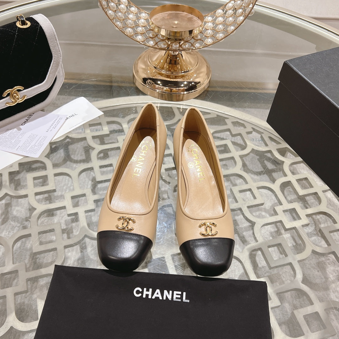 CC High Heels Beige Black Lambskin