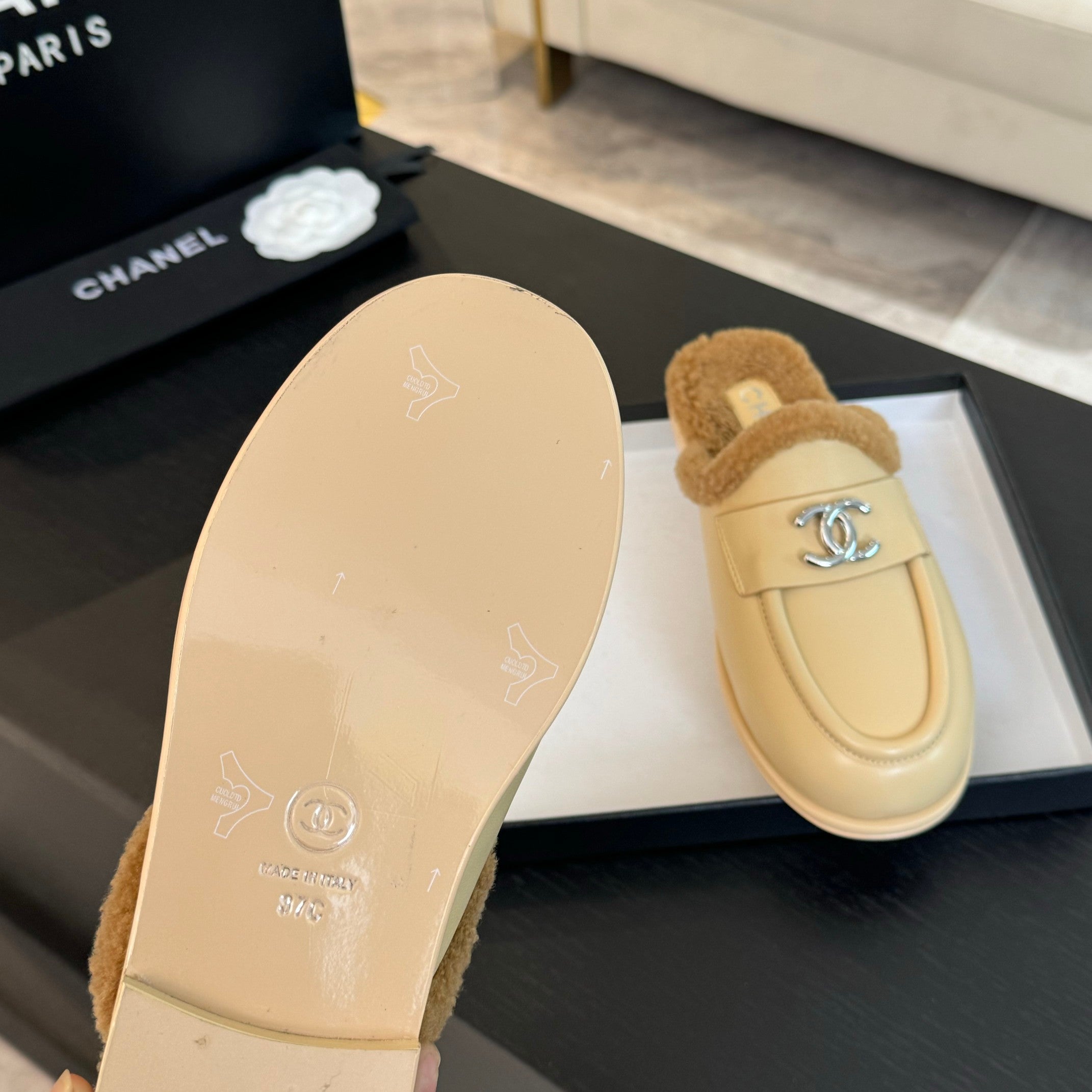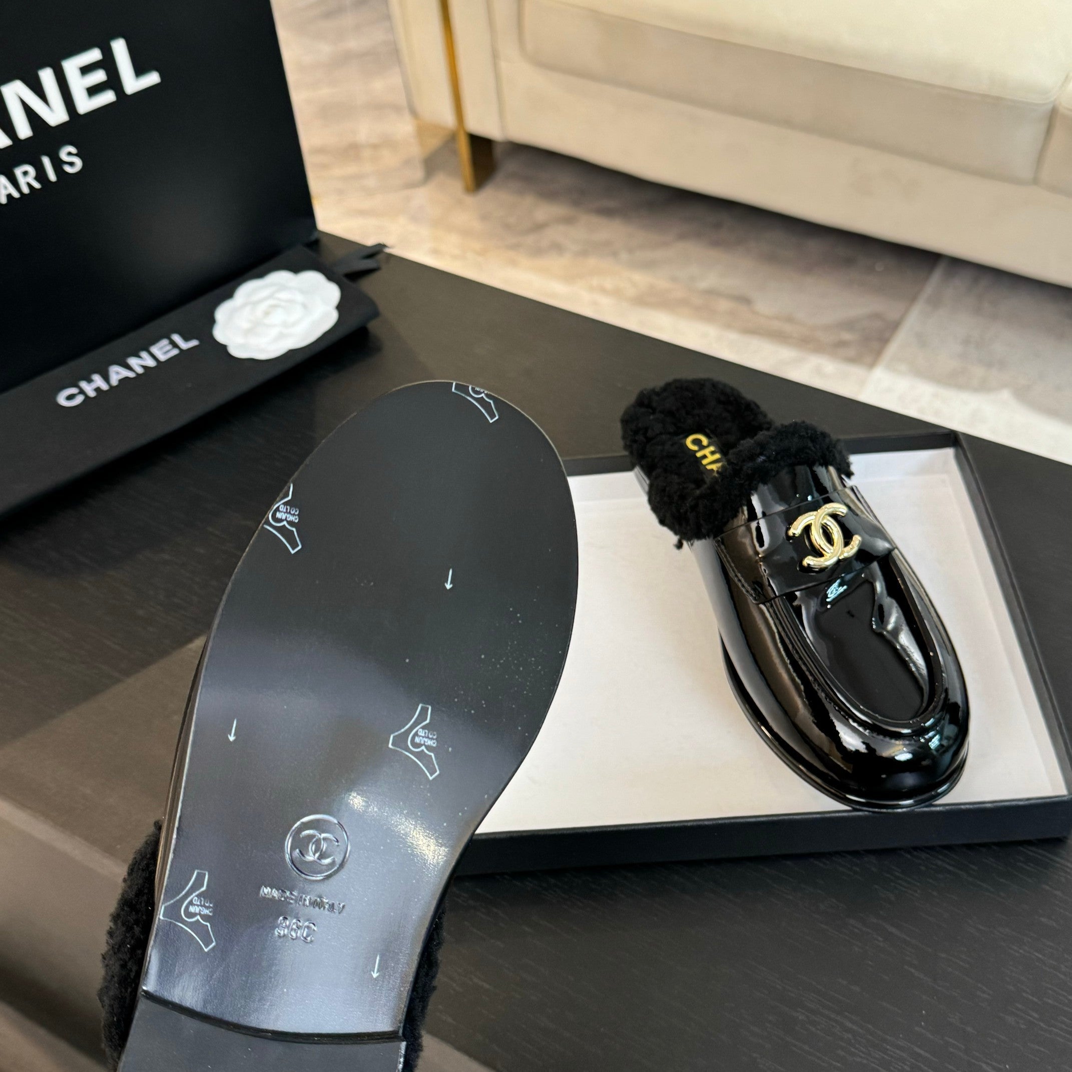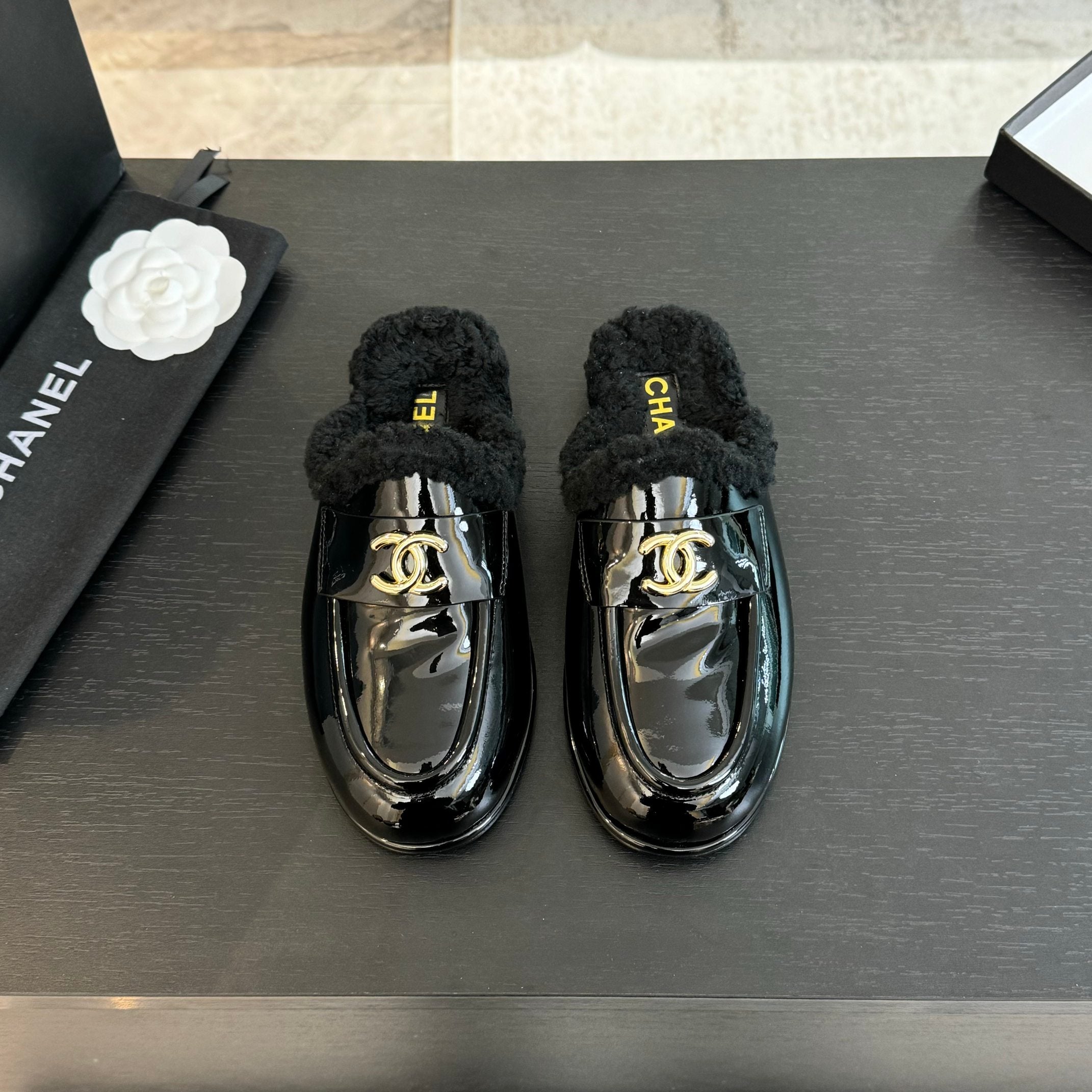CC Mule 30mm In Black Wool Tweed And Lambskin Gold Hardware