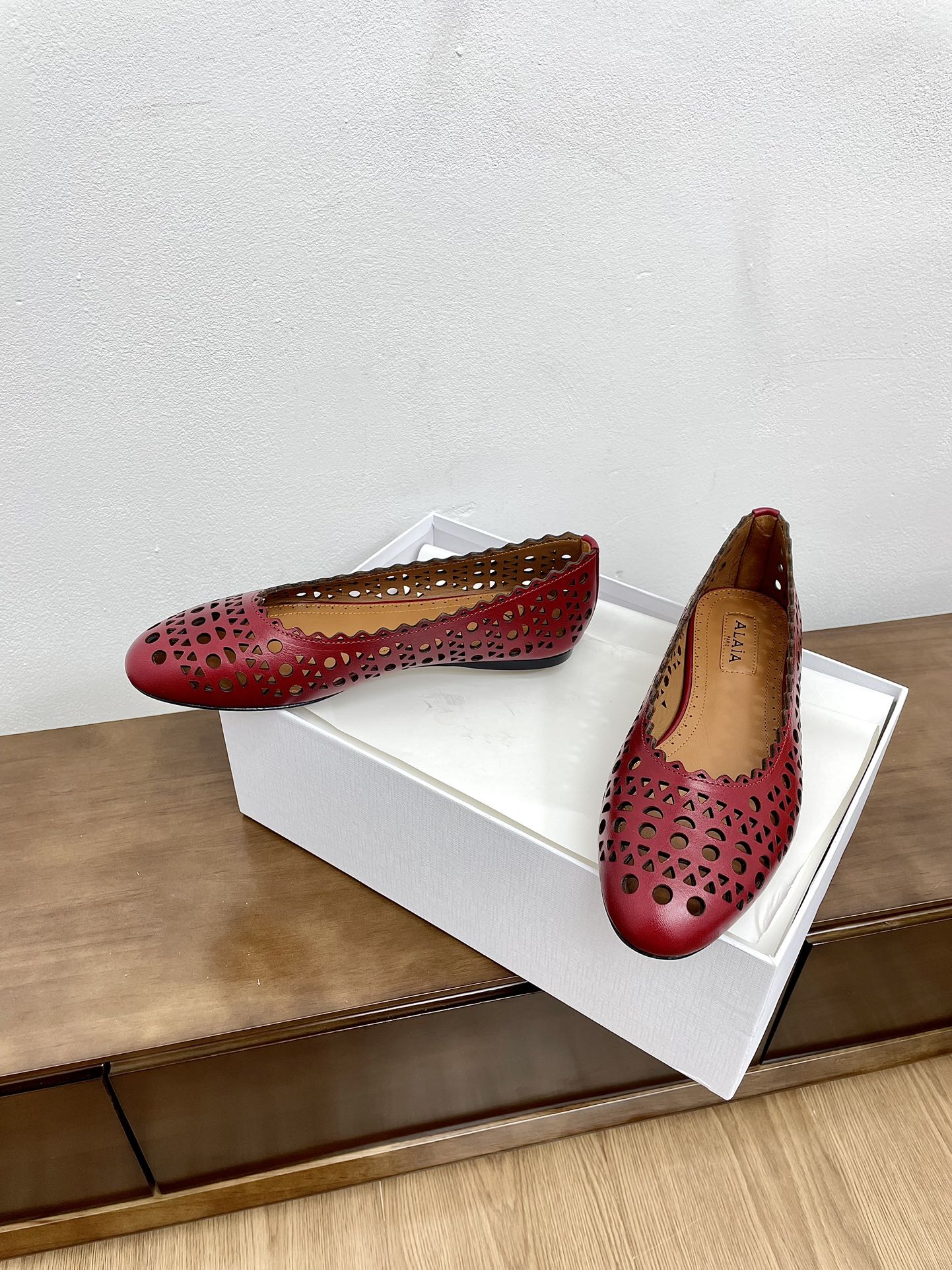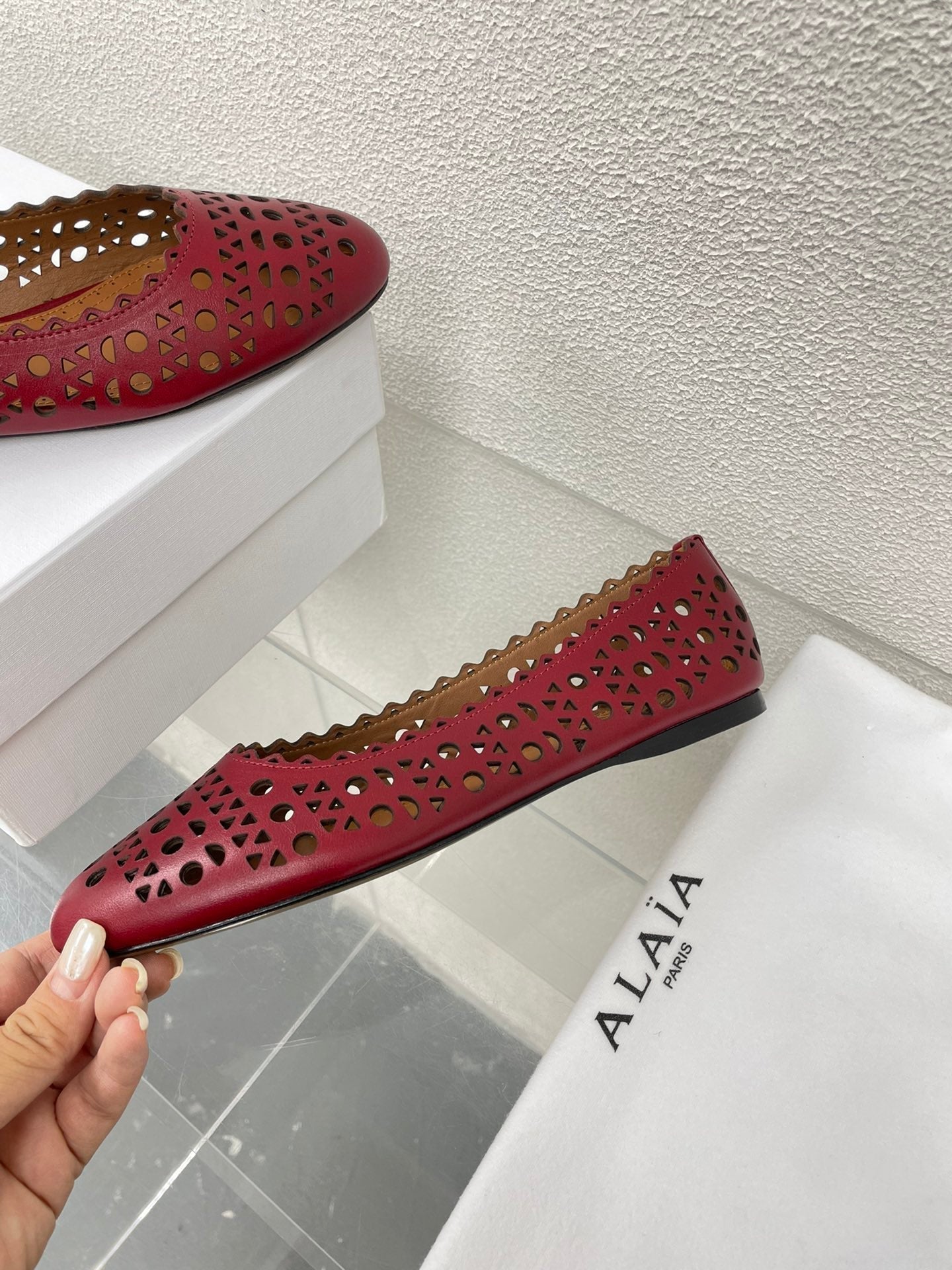 ALAIA BALLET FLATS IN CHERRY RED MESH FISHNET