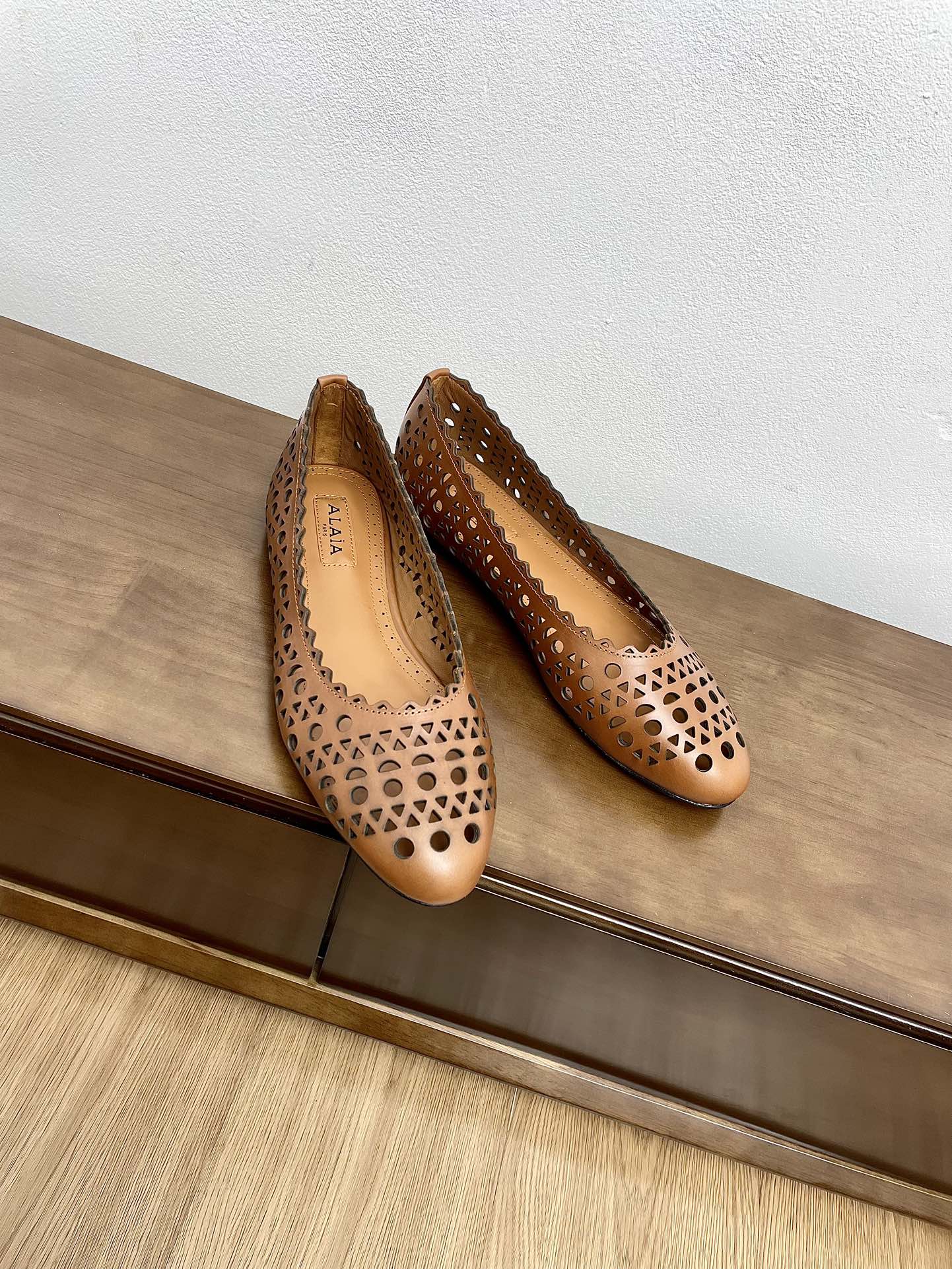 ALAIA BALLET FLATS IN COPPER BROWN SMOOTH CALFSKIN