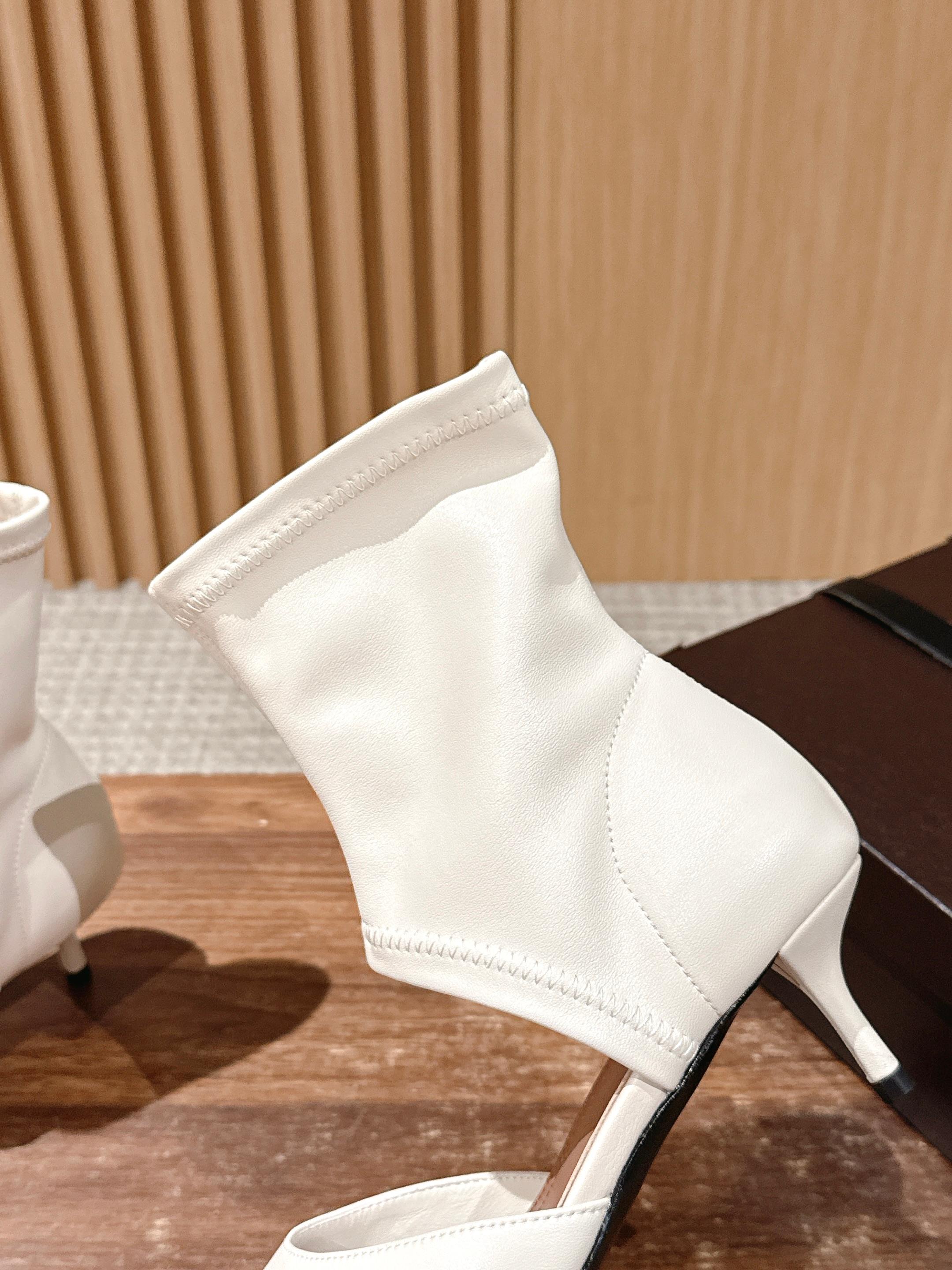 ALAIA AZZEDINE HIGH HEELS IN WHITE CALFSKIN WITH GOLD HARDWARE