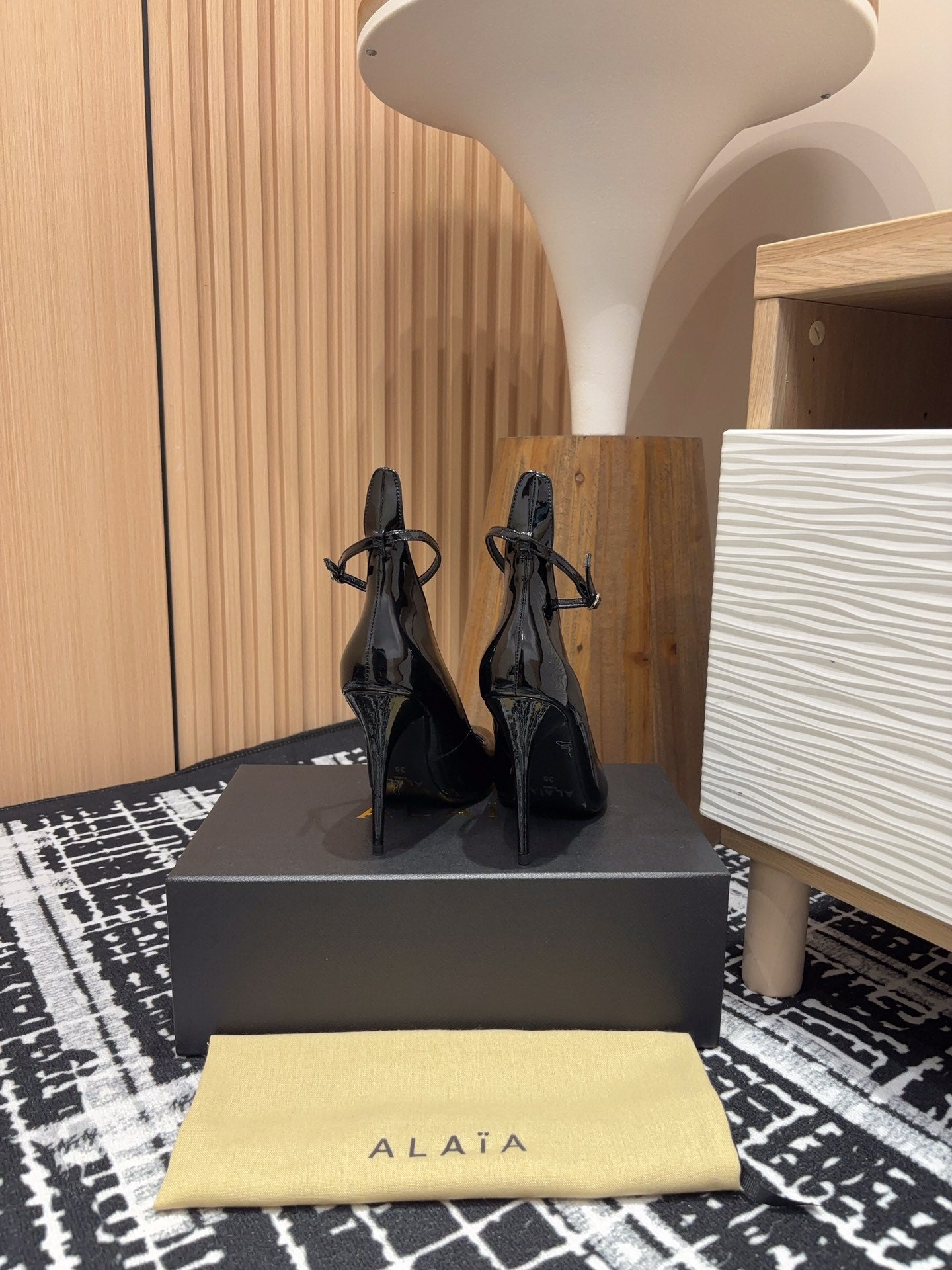 Alaia Confetti Leather Mules Glossy Black Sheepskin Cowhide 293163