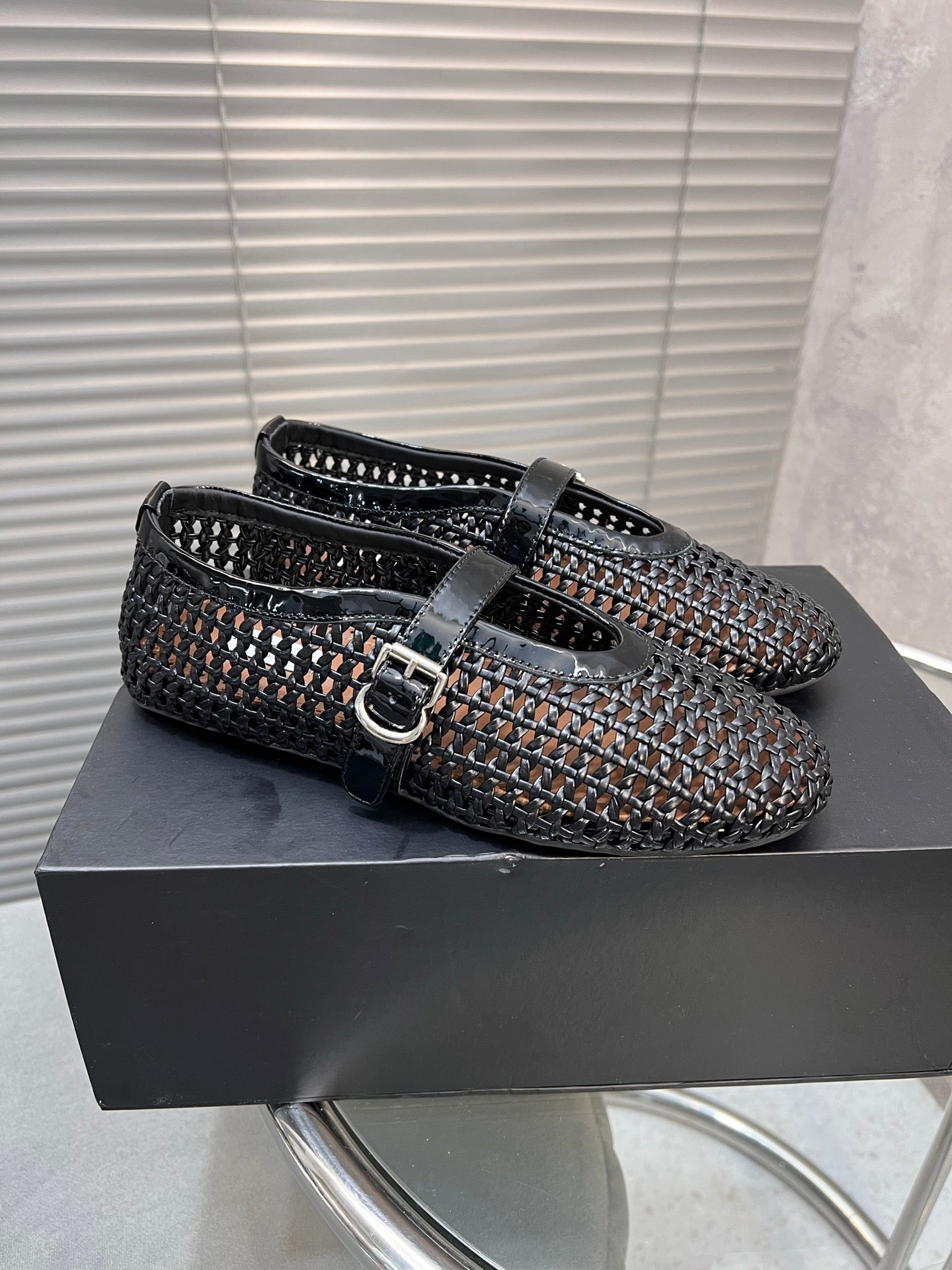 Alaia Braided Hollow Ballet Flats Black Cowhide 300041