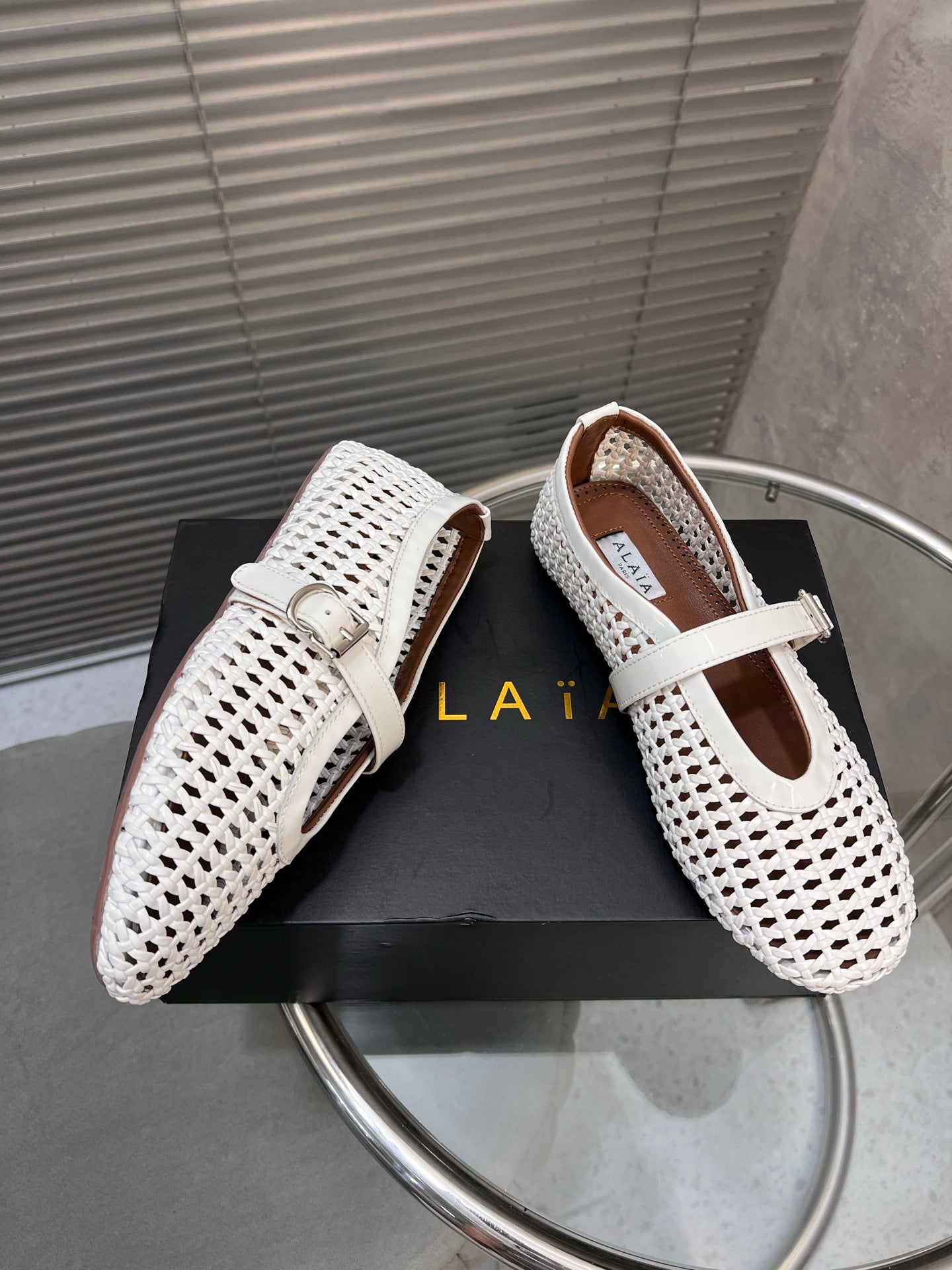 Alaia Braided Hollow Ballet Flats White Cowhide 300044