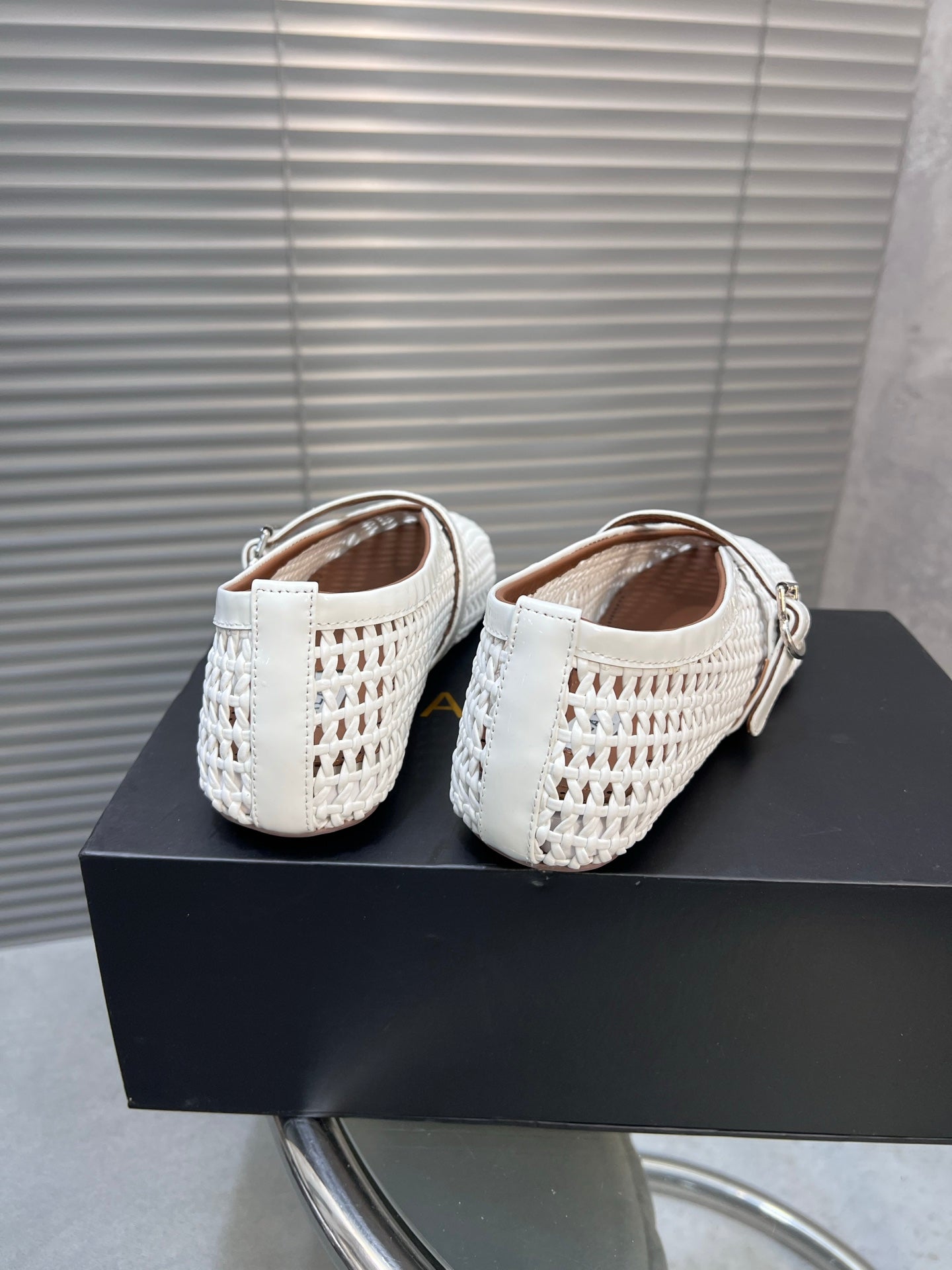 Alaia Braided Hollow Ballet Flats Silver Cowhide 300042