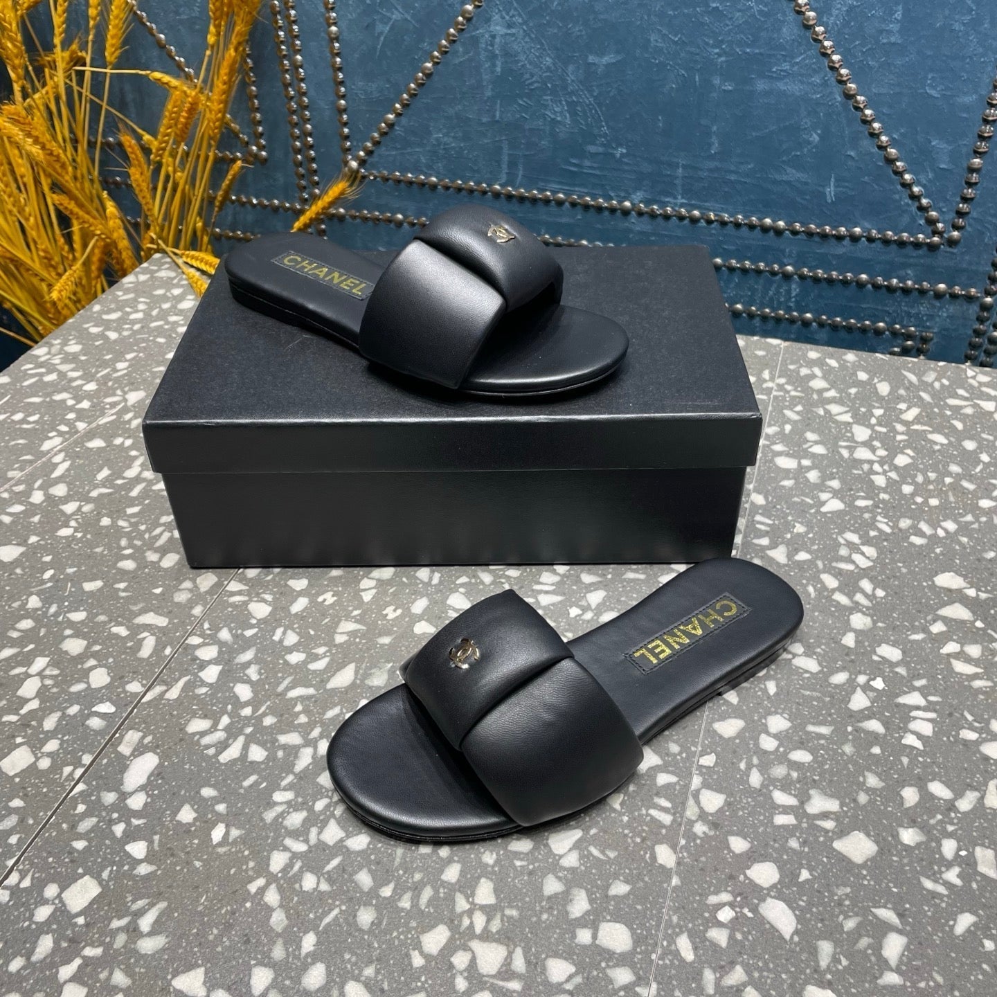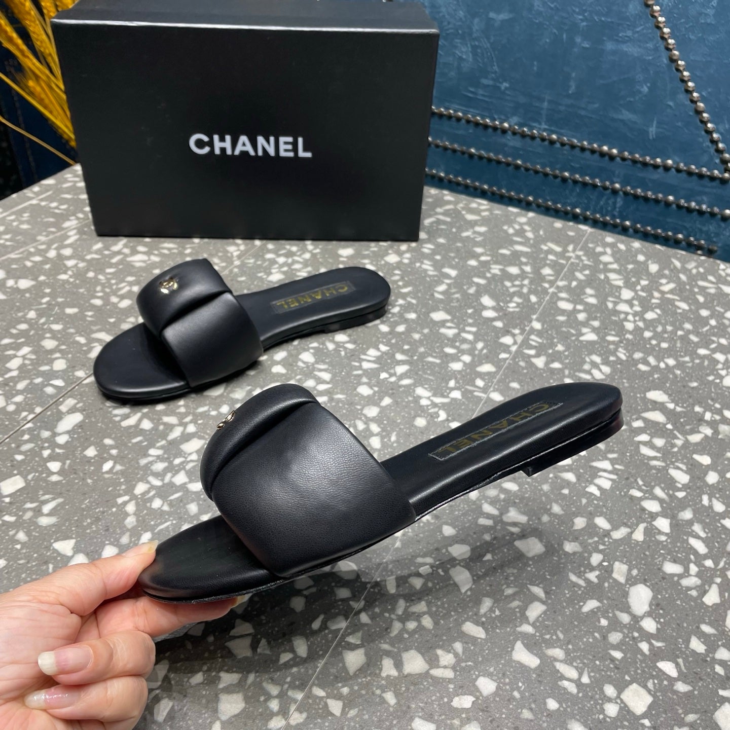 CC Slippers White Black And Blue Red Wool And Calfskin