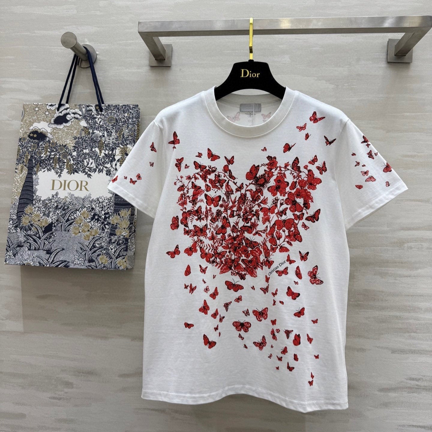 CD Butterfly T-shirt White mix colors Cotton Linen