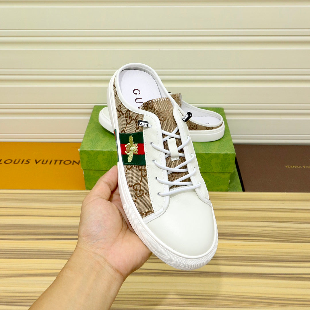 GG Men's Ace Sneaker Brown White Print Fabric 522633