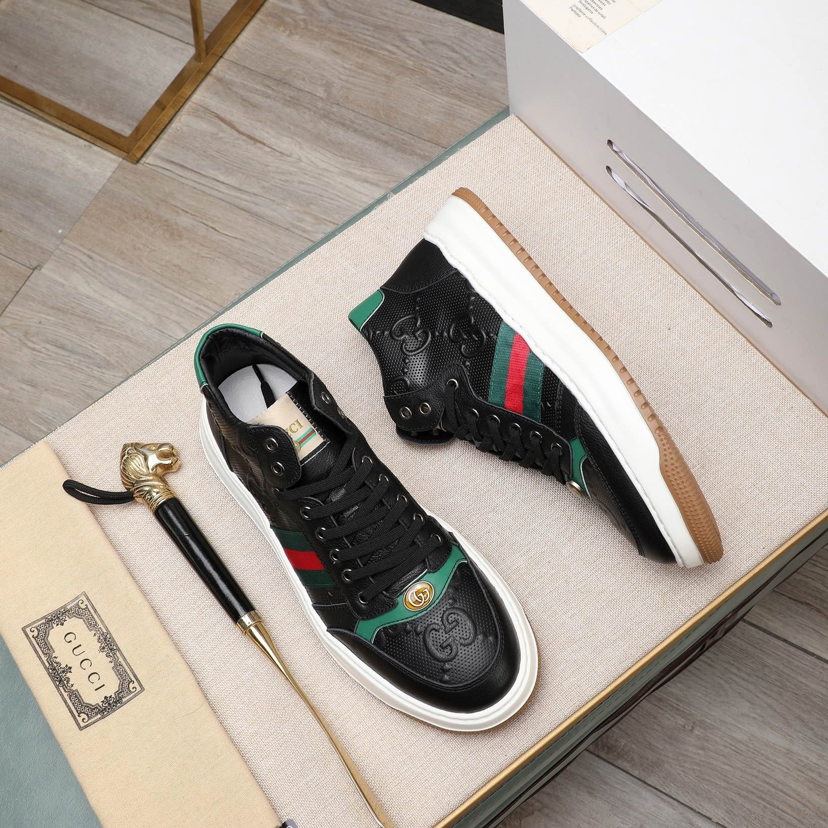 GG Men's Screener Sneaker Black White Calfskin 523582