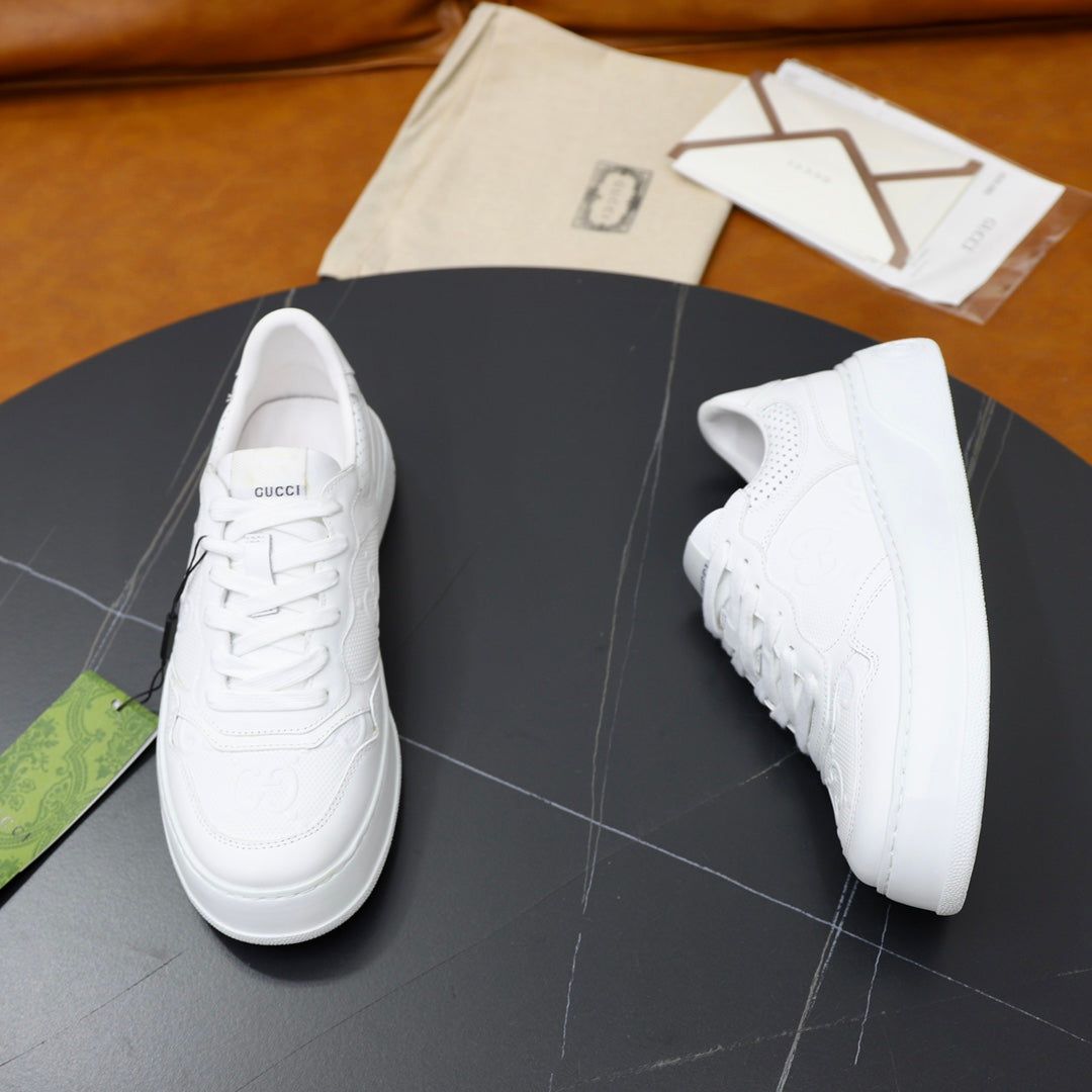 GG Men's Sneaker White Brown Calfskin Canvas 528940