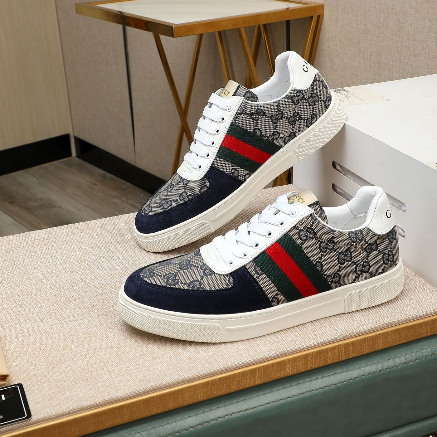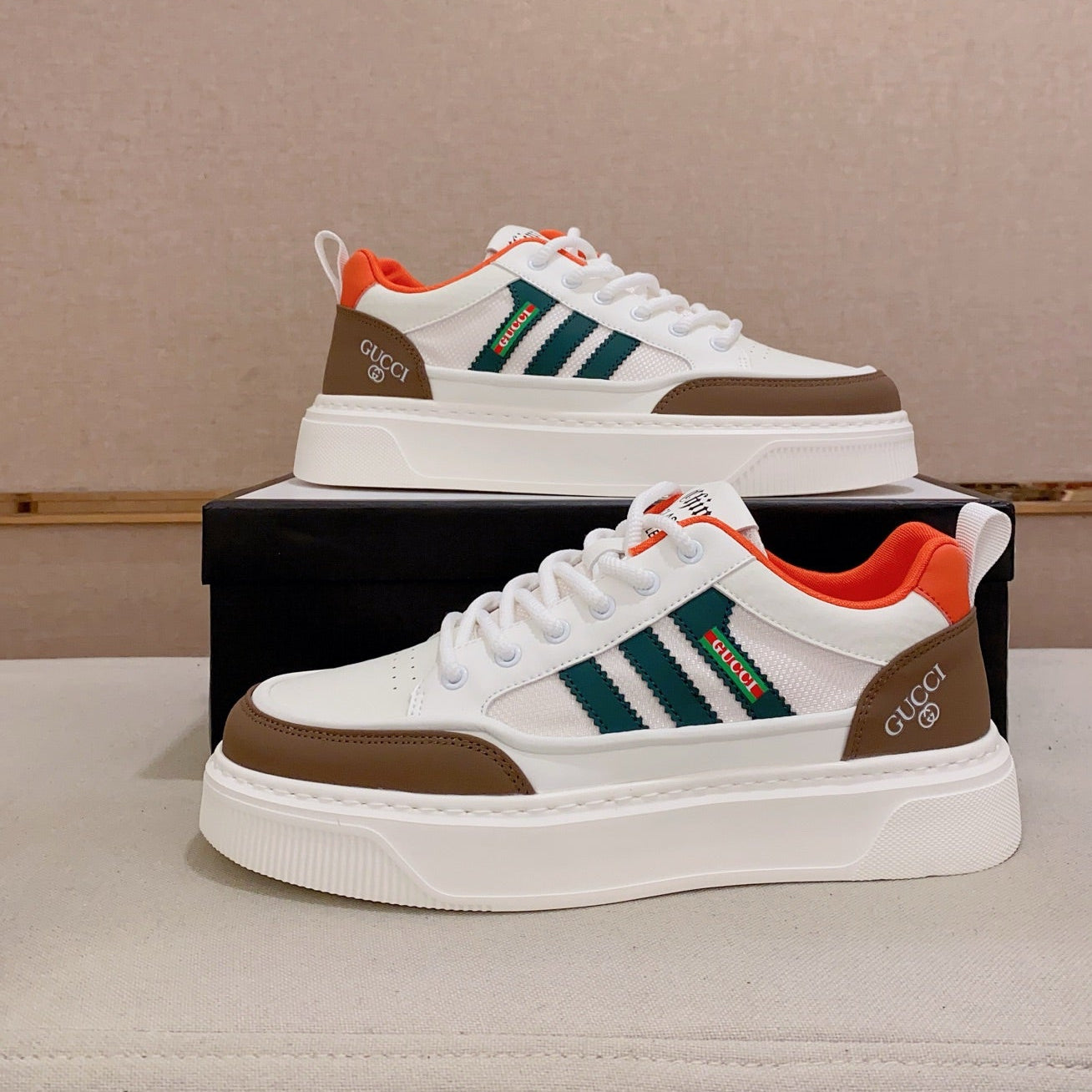 GG Men's Sneaker Brown White Canvas Calfskin 523337