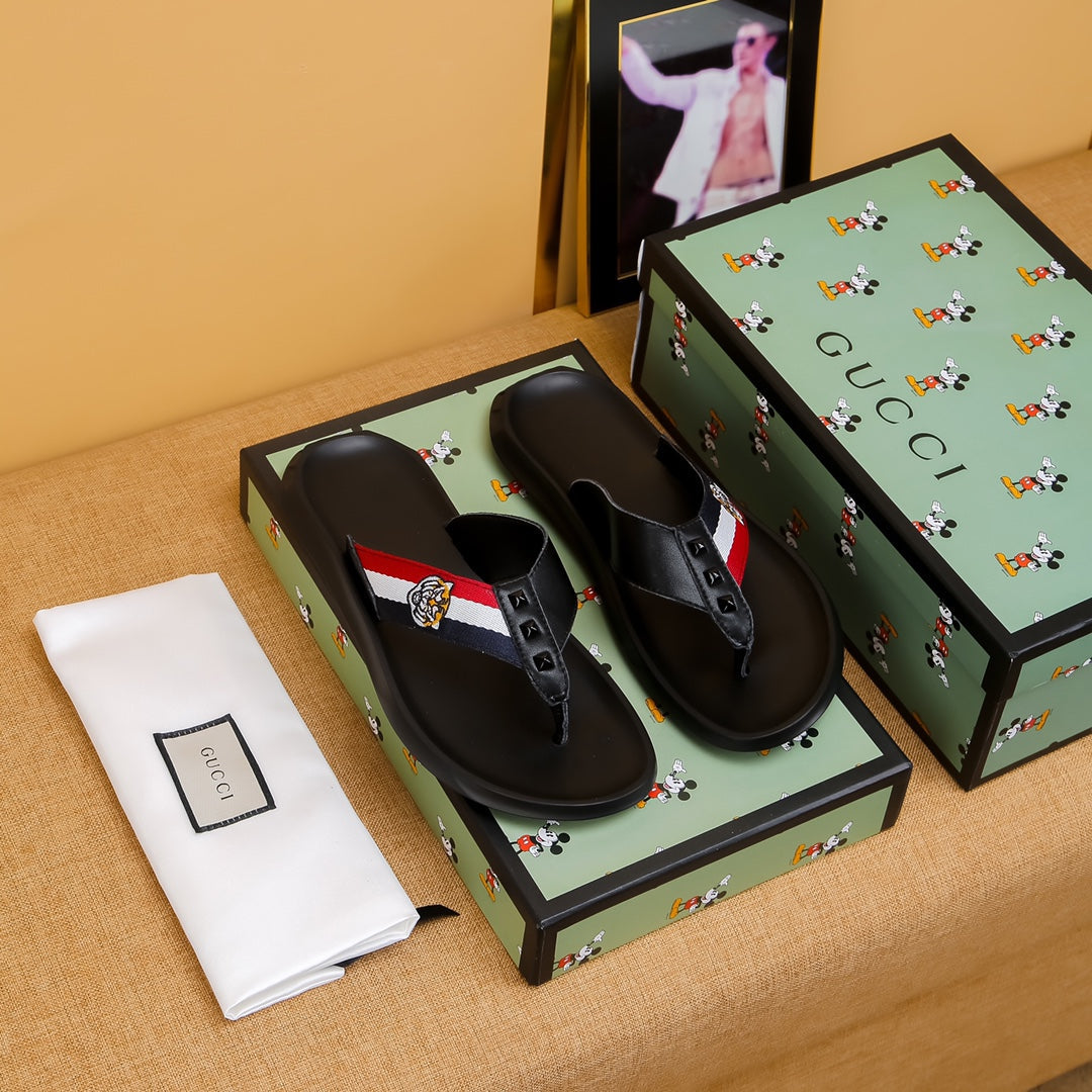 GG Men's Thong Sandals Black Canvas Cowhide 542951