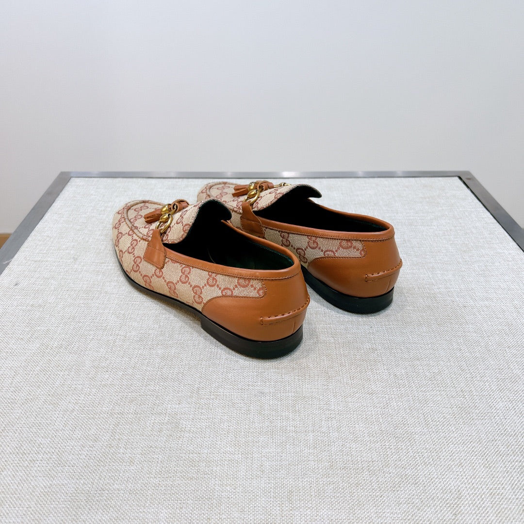 GG Men's Tassel Loafer Brown Cowhide Canvas 548740
