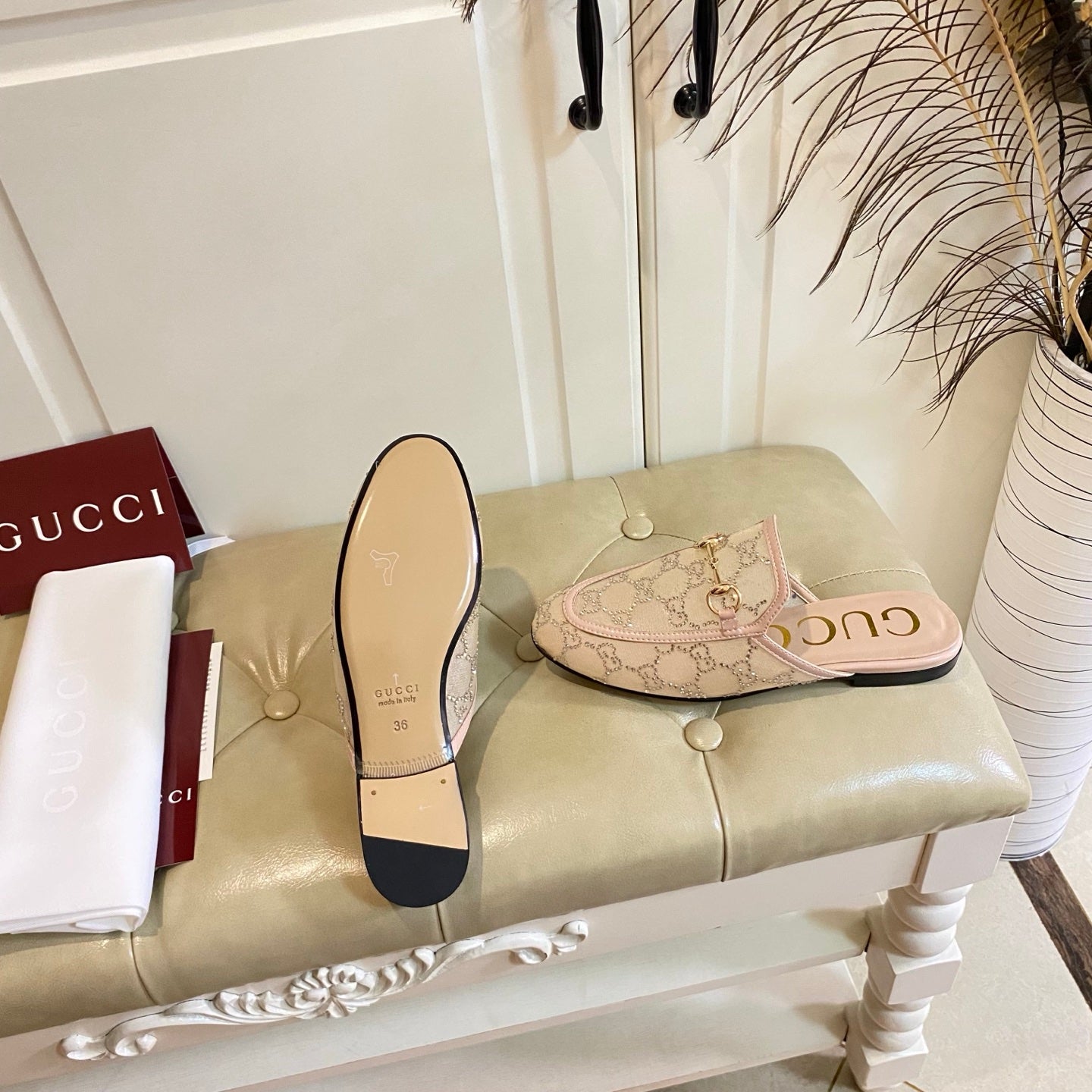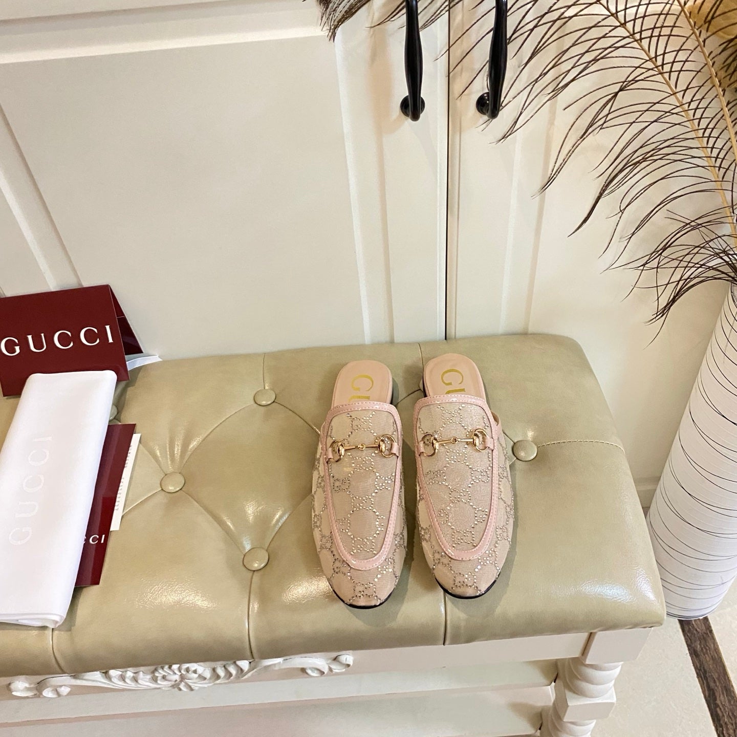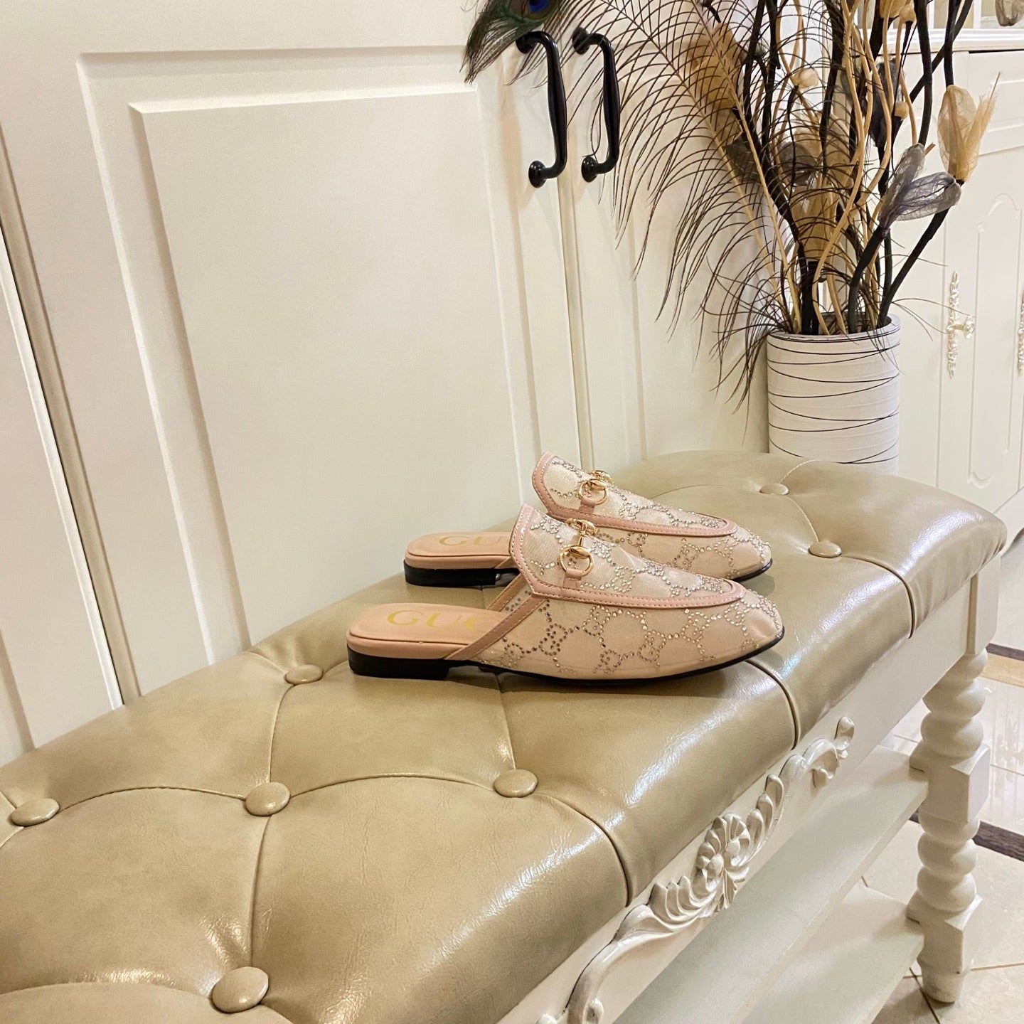 GG PRINCETOWN MULES LIGHT BROWN FABRIC