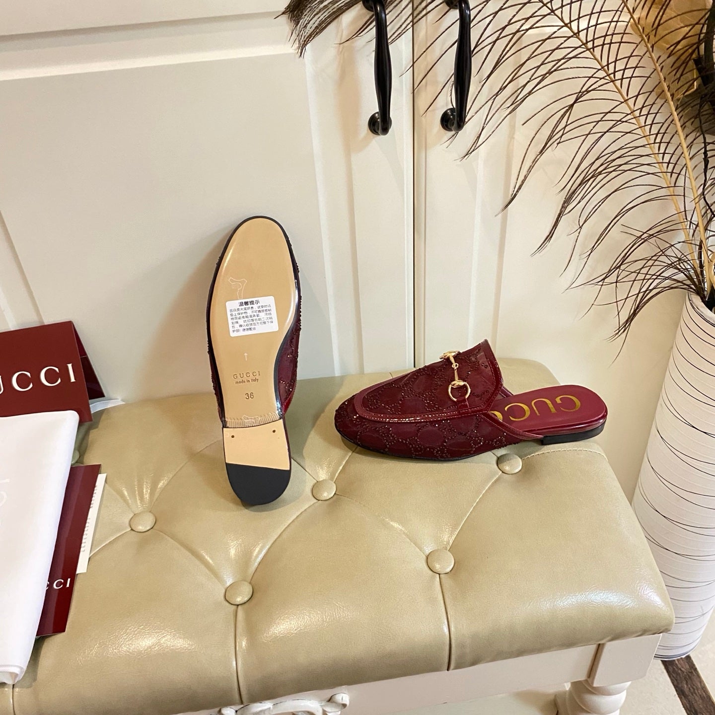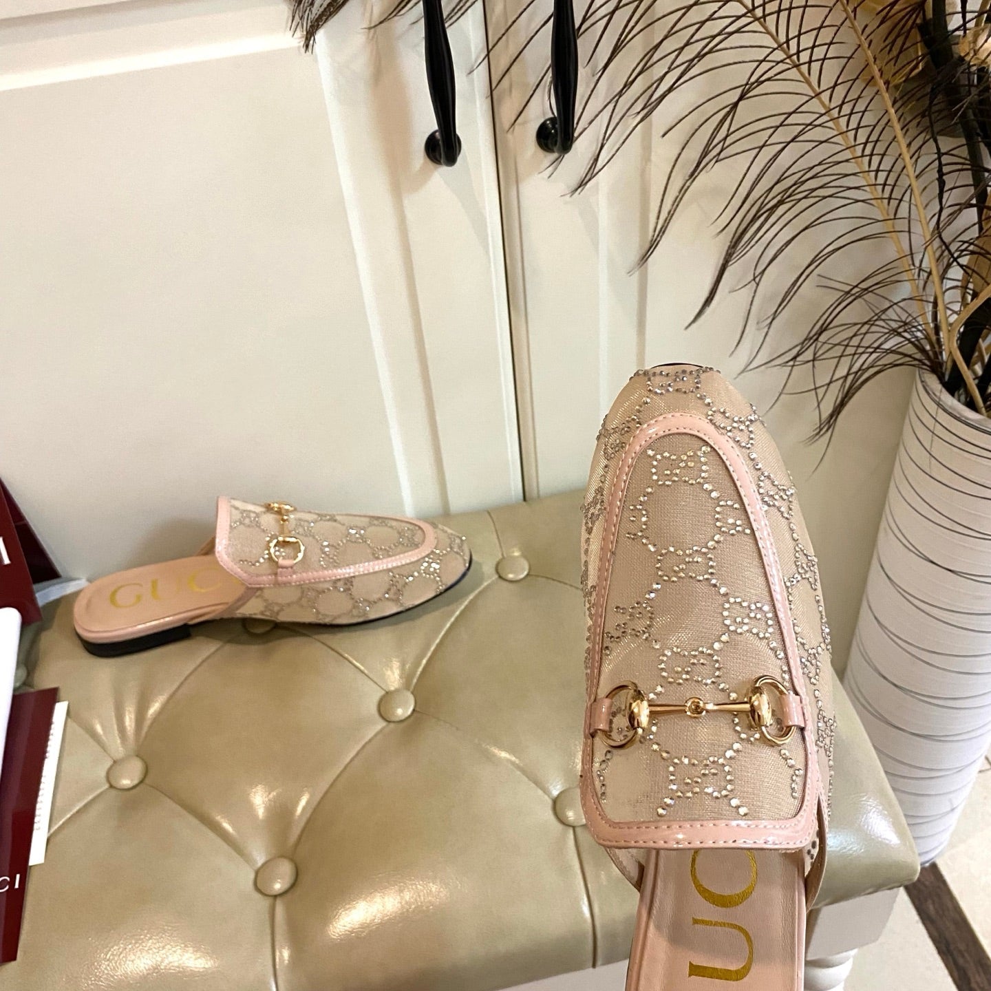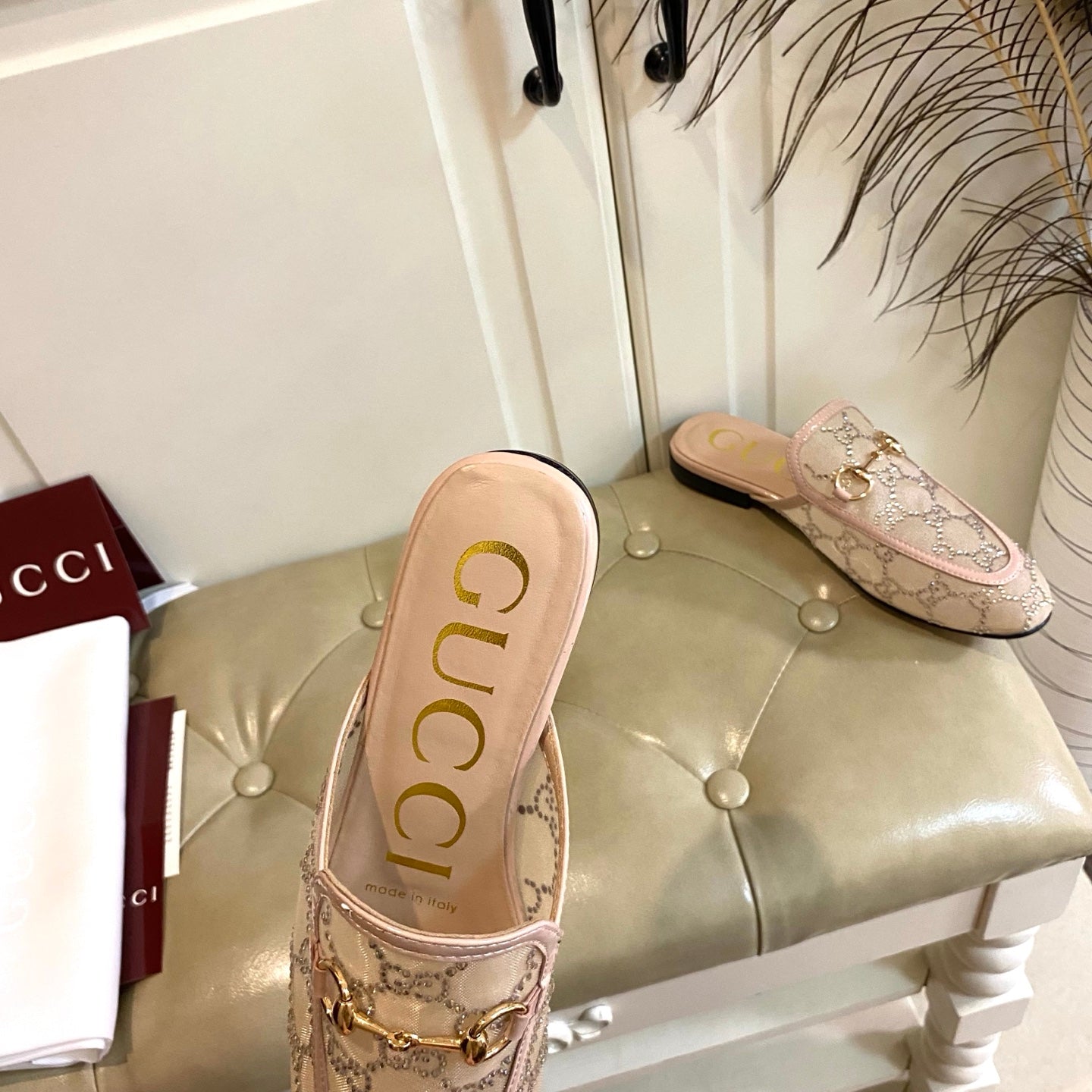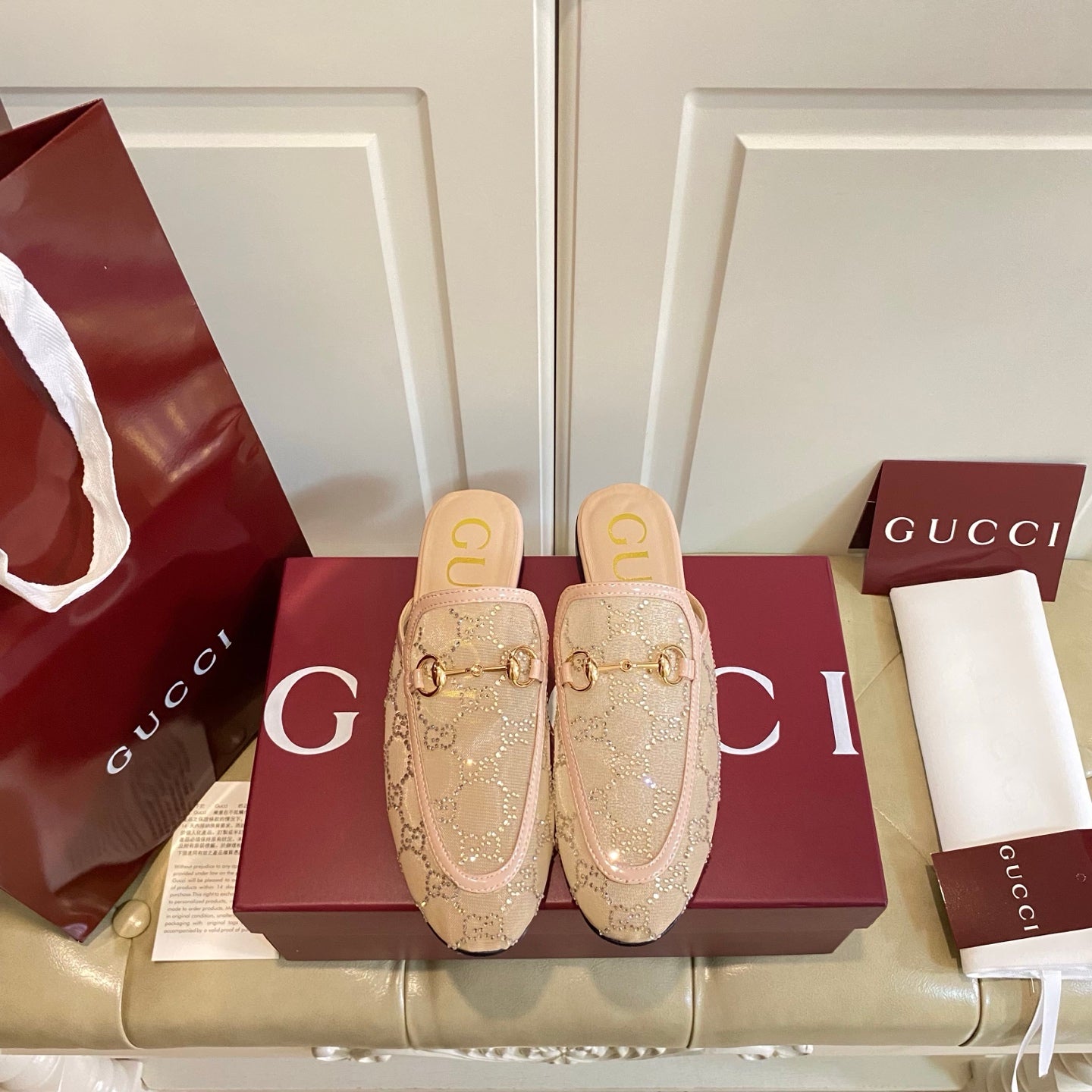 GG PRINCETOWN MULES LIGHT BROWN FABRIC