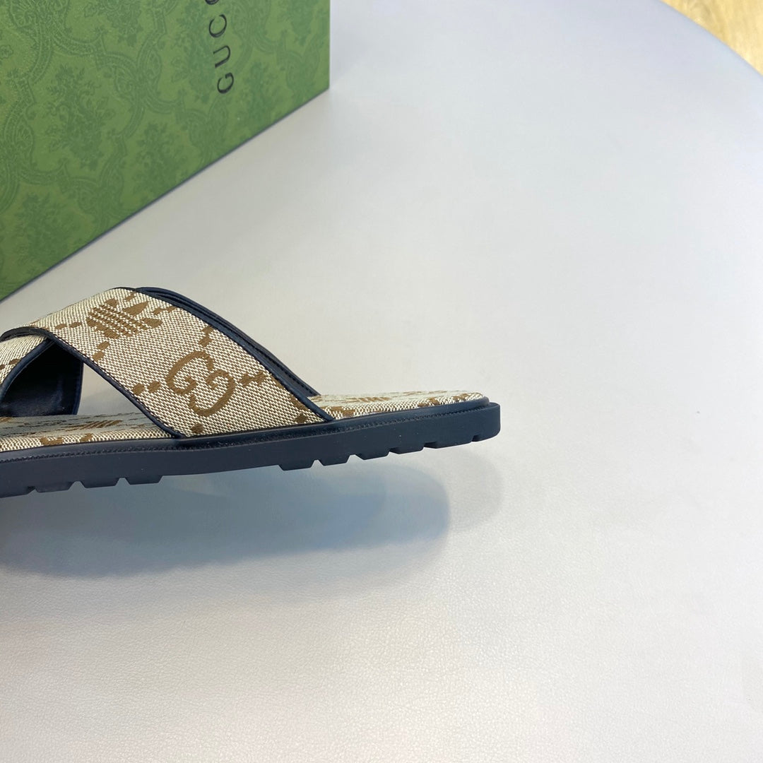 GG x Adidas Men's Sandals Slide Brown Canvas 558909