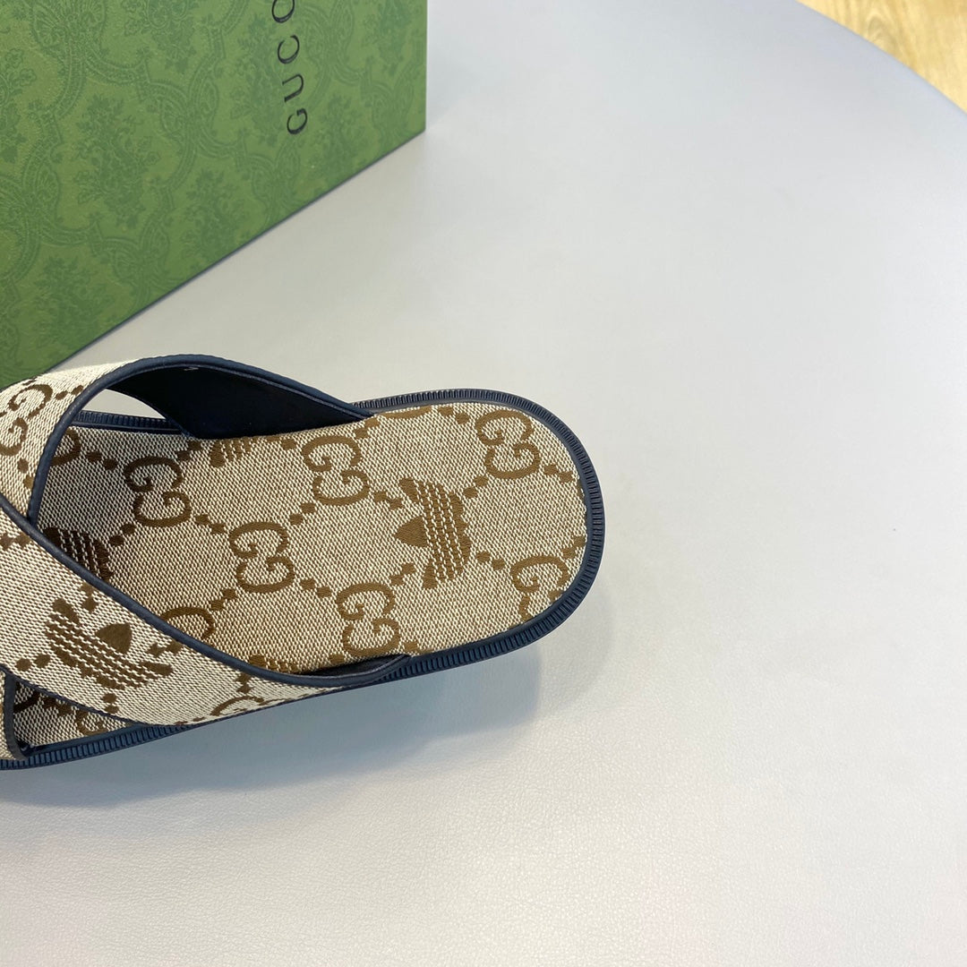 GG x Adidas Men's Thong Sandals Brown Canvas 558907