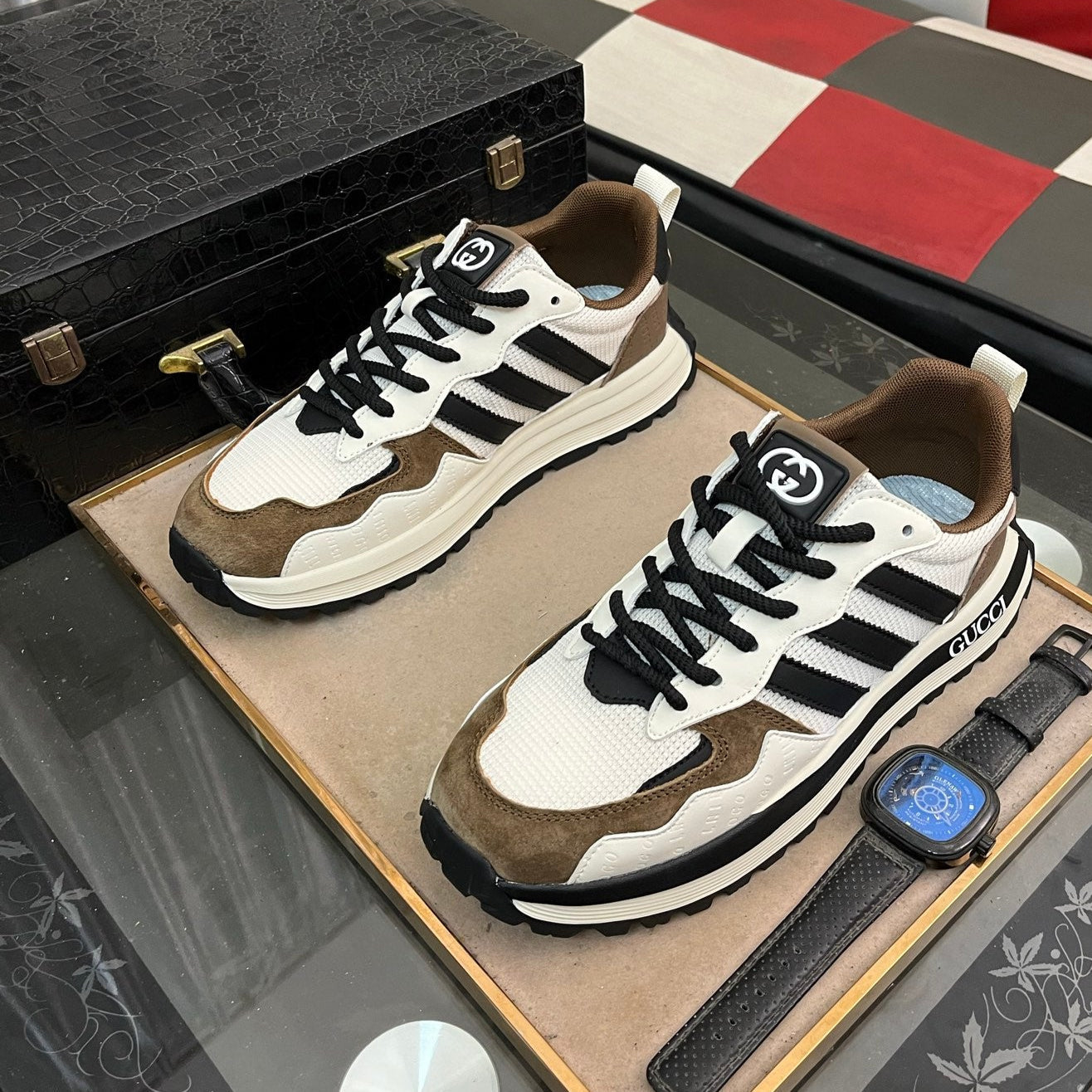 GG x Adidas Men's Sneaker White Brown Mesh Suede 554164