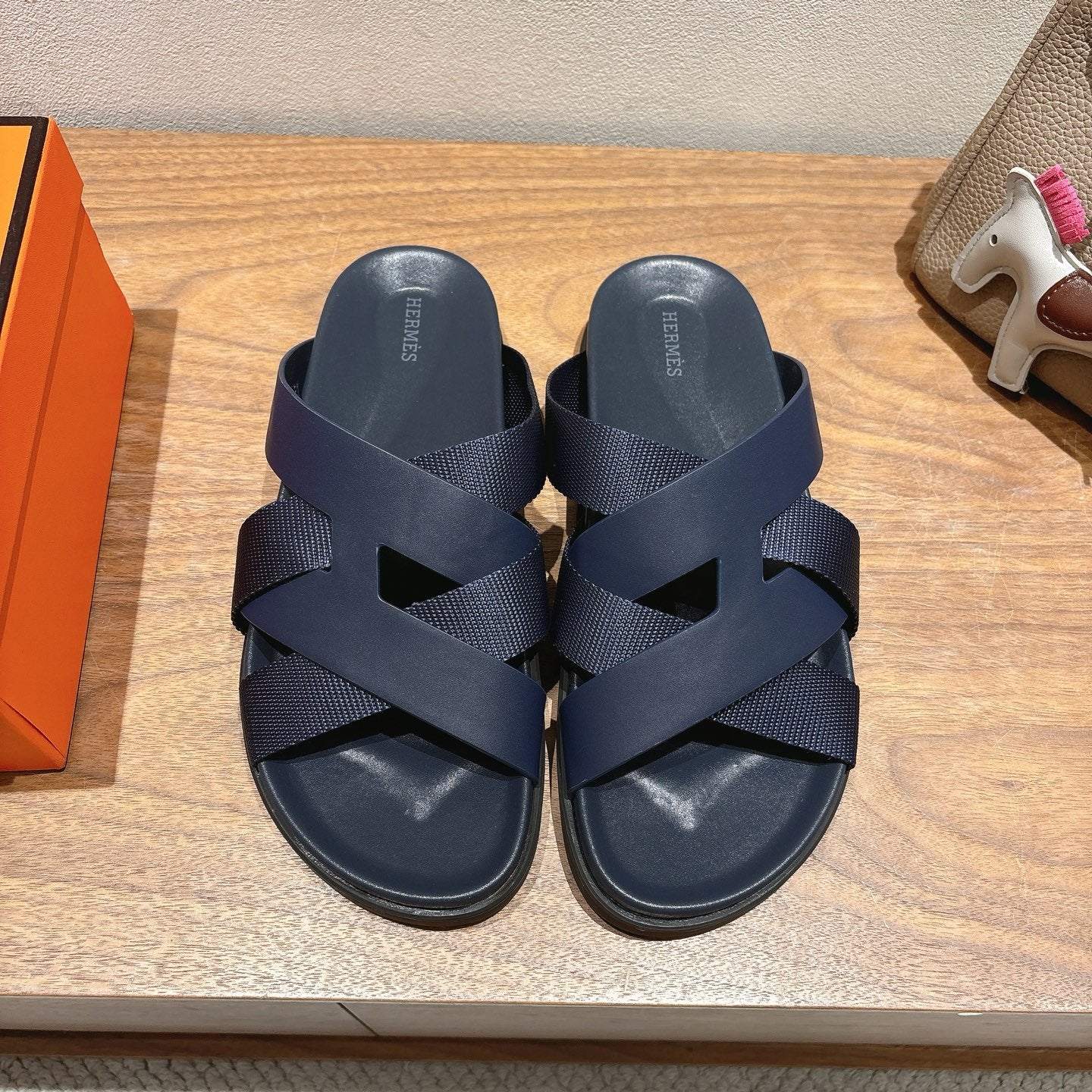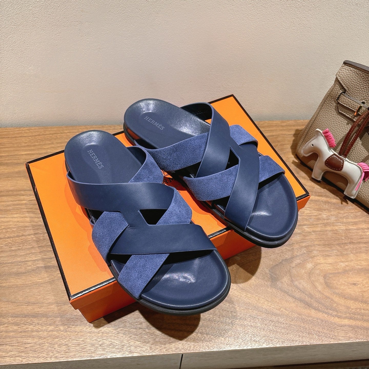 HM 25 Jackson Sandal Dark Blue Grained Calfskin