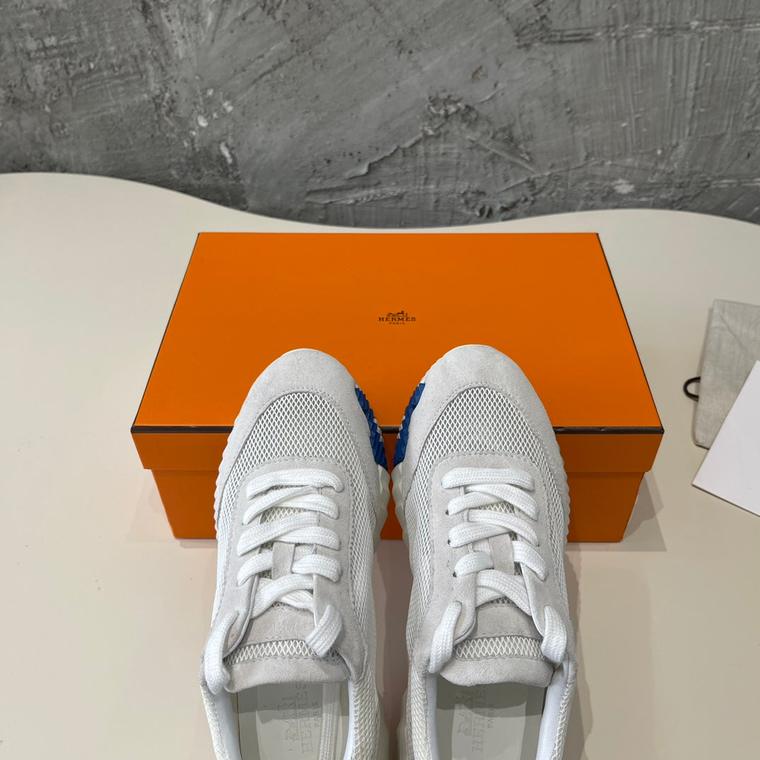 HM Bouncing 35 Sneakers White Canvas Blue Suede Goatskin Orange H Seafoam
