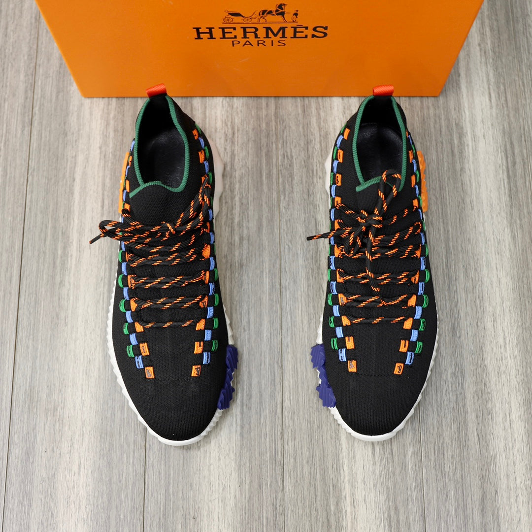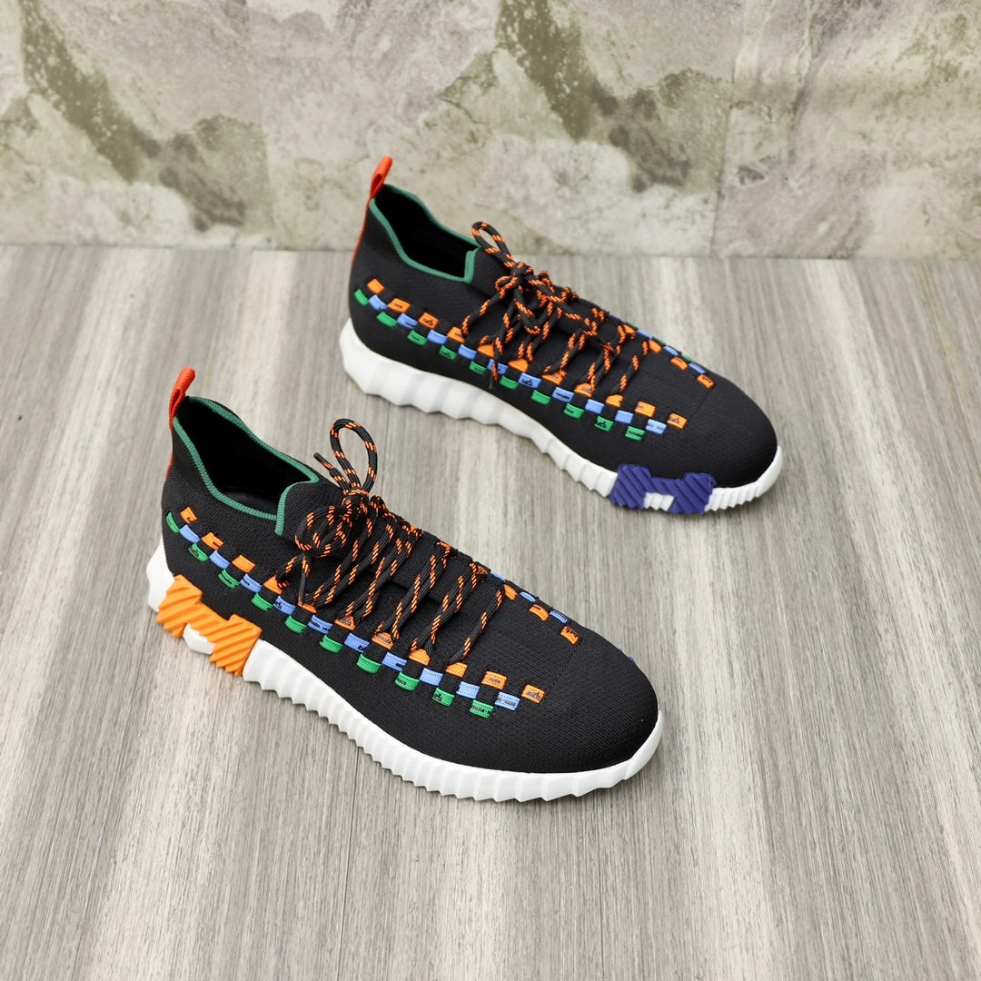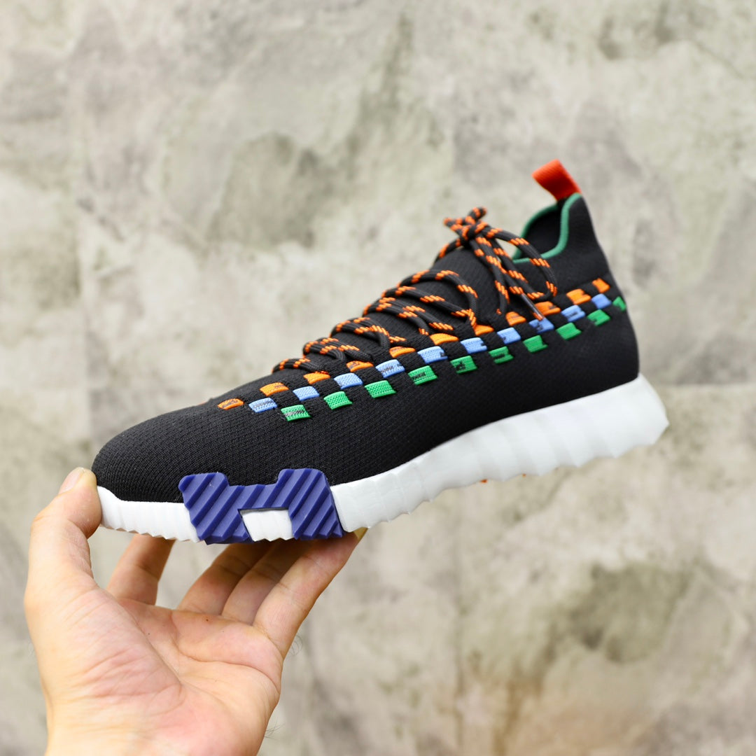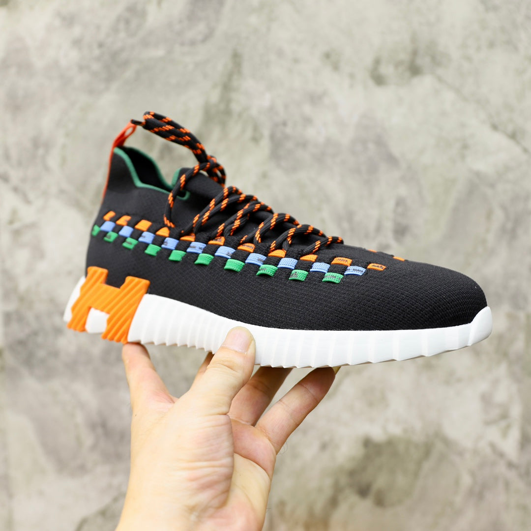 HM FLEX SLIP-ON SNEAKER BLACK AND ORANGE WOVEN FABRIC