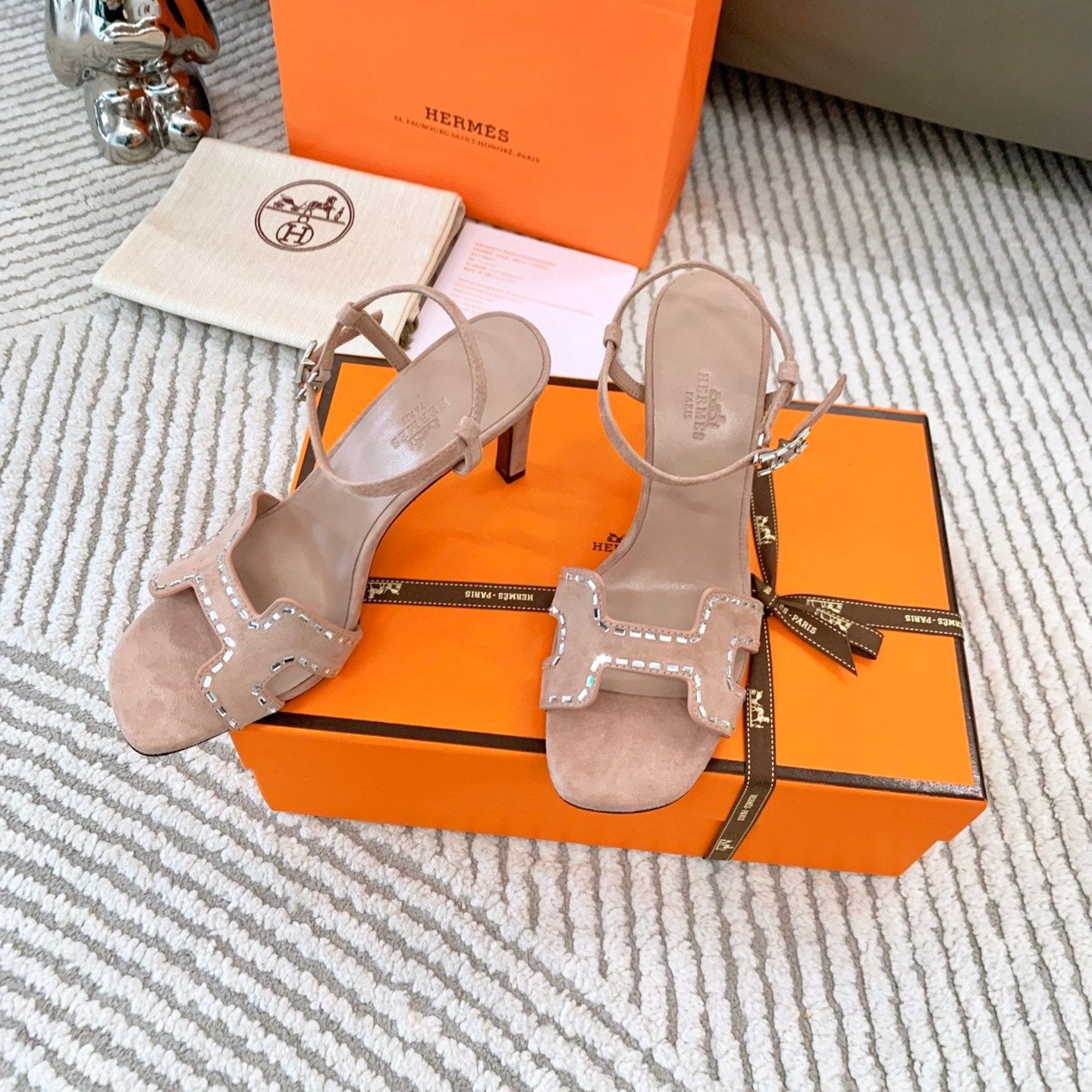 HM Heracles Sandals Etoupe Beige Frabic Calfskin 294069