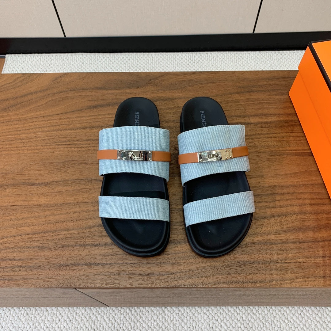 HM Jackson Sandal Denim Black Calfskin 294043