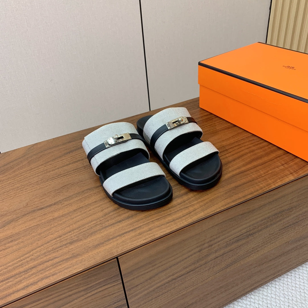 HM Jackson Sandal Grey Black Calfskin 294042