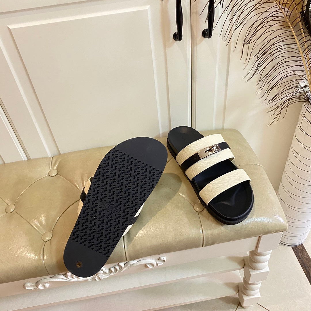 HM Jackson Sandal Beige Black Calfskin 294051