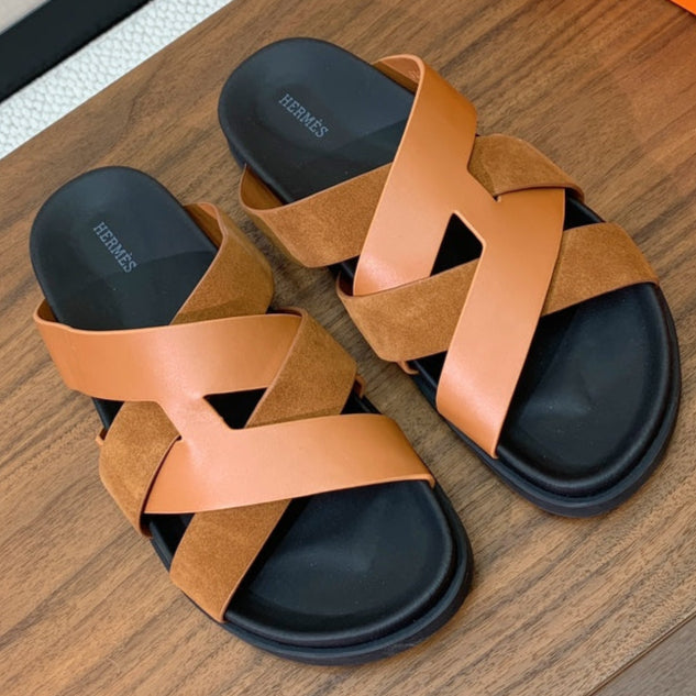 HM Kazimir Sandal Brown Black Suede Calfskin 294039